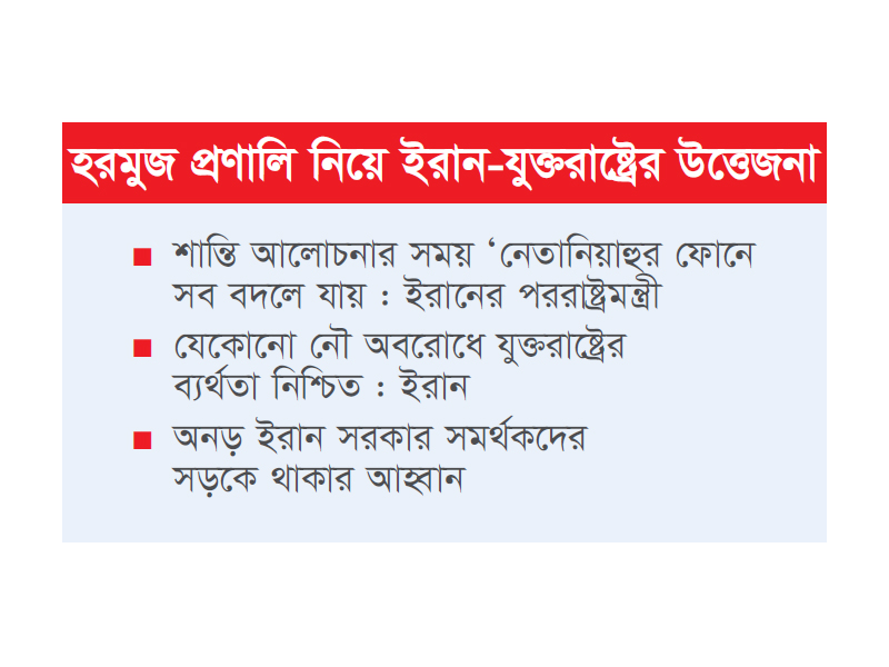 পাকিস্তানের ইসলামাবাদে আলোচনায় যুদ্ধ বন্ধের সুরাহা না হওয়ায় ফের ইরান ও যুদ্ধরাষ্ট্রের মধ্যে সংঘাতের আশঙ্কা তৈরি হয়েছে। মধ্যপ্রাচ্যে আবারও উত্তেজনা বৃদ্ধি পেয়েছে। এতে আঞ্চলিক স্থিতিশীলতা এবং বৈশ্বিক নিরাপত্তা নিয়ে নতুন করে উদ্বেগ তৈরি হয়েছে। উভয় পক্ষই নিজেদের অবস্থানে অনড় থাকায় পরিস্থিতি আরও জটিল হয়ে উঠছে। বিশেষ করে হরমুজ প্রণালির নিরাপত্তা বিঘ্নিত হলে আন্তর্জাতিক বাণিজ্যে বড় ধরনের অস্থিরতা দেখা দিতে পারে। ইরানের সঙ্গে শান্তি আলোচনা ব্যর্থ হওয়ার পর এবার হরমুজ প্রণালি ‘অবরোধ’ করার ঘোষণা দিয়েছেন মার্কিন প্রেসিডেন্ট ডোনাল্ড ট্রাম্প। যুক্তরাষ্ট্রের প্রেসিডেন্টের হুঁমকির জবাবে ইরানের সর্বোচ্চ নেতার জ্যেষ্ঠ সামরিক উপদেষ্টা মোহসেন রেজাই বলেছেন, যেভাবে হরমুজ প্রণালি খুলে দেওয়ার চেষ্টা করতে গিয়ে যুক্তরাষ্ট্র ইরানের কাছে একটি ঐতিহাসিক পরাজয়ের মুখে পড়েছিল, তেমনিভাবে যেকোনো নৌ অবরোধের ক্ষেত্রেও তারা ব্যর্থ হতে বাধ্য। পাকিস্তানের ইসলামাবাদে যুক্তরাষ্ট্র ও ইরানের প্রতিনিধিদের মধ্যে শান্তি আলোচনা চলাকালে মার্কিন ভাইস প্রেসিডেন্ট জেডি ভ্যান্সের কাছে একটি ফোন আসে। ইসরায়েলের প্রধানমন্ত্রী বেনিয়ামিন নেতানিয়াহুর ওই ফোনকলের পর পুরো পরিস্থিতি পাল্টে যায় বলে সামাজিক যোগাযোগমাধ্যম এক্সে এক পোস্টে দাবি করেছেন ইরানের পররাষ্ট্রমন্ত্রী আব্বাস আরাগচি। আরাগচি তার পোস্টে লেখেন, ‘বৈঠকের সময় ভ্যান্সের কাছে আসা নেতানিয়াহুর ফোনকল আলোচনার মনোযোগ যুক্তরাষ্ট্র ও ইরানের ওপর থেকে সরিয়ে ইসরায়েলের স্বার্থের দিকে নিয়ে যায়। আরাগচি আরও লিখেছেন, ‘যুক্তরাষ্ট্র আলোচনার টেবিলে সেসব লক্ষ্য অর্জনের চেষ্টা করেছে, যা তারা যুদ্ধের মাধ্যমে অর্জন করতে পারেনি।’