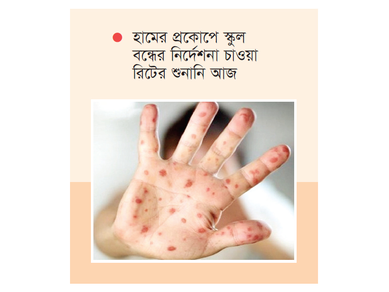 হামের প্রকোপে স্কুল বন্ধের নির্দেশনা চাওয়া রিটের শুনানি আজ : হামের প্রকোপ না কমা পর্যন্ত স্কুল বন্ধ রাখার নির্দেশনা চেয়ে করা রিটের শুনানির জন্য আজ সোমবার (২০ এপ্রিল) দিন ধার্য করেছেন হাইকোর্ট। গতকাল রোববার বিচারপতি রাজিক আল জলিল ও বিচারপতি দেবাশীষ রায় চৌধুরীর নেতৃত্বাধীন হাইকোর্ট বেঞ্চ এ দিন নির্ধারণ করেন। আদালতে রিটের পক্ষে শুনানি করবেন ব্যারিস্টার পূর্ণিমা জাহান। গত ২ এপ্রিল হামের প্রকোপ না কমা পর্যন্ত স্কুল বন্ধ রাখার নির্দেশনা চেয়ে হাইকোর্টে রিট দায়ের করা হয়। একইসঙ্গে দেশে হামে আক্রান্ত হয়ে ৪৭ শিশুর মৃত্যুর ঘটনায় উচ্চপর্যায়ের তদন্ত কমিটি গঠনের নির্দেশনা চাওয়া হয়।