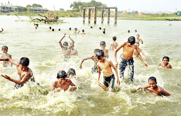 গ্রীষ্মের প্রচণ্ড গরমে অতিষ্ঠ জনজীবন। একটু স্বস্তি পেতে খালের পানিতে দুরন্তপনায় মেতে উঠেছে শিশুরা। ছবিটি গতকাল রাজধানীর আফতাবনগর থেকে তোলা * এম খোকন সিকদার