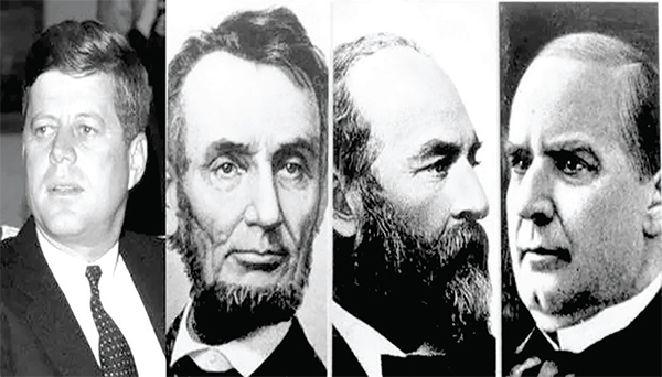 জন এফ. কেনেডি, ৩৫ তম প্রেসিডেন্ট : কেনেডিকে ১৯৬৩ সালের ২২ নভেম্বর স্থানীয় সময় দুপুর সাড়ে ১২টার দিকে ডালাস শহরে গুলি করে হত্যা করা হয়েছিল। সেসময় তিনি মোটর শোভাযাত্রা করতে করতে দশর্কদের ভিড়ের পাশ দিয়ে যাচ্ছিলেন। এর মধ্যেই কেনেডির ঘাড় ও মাথার পেছনে গুলি করা হয়। সঙ্গে সঙ্গে মাত্র ৪৬ বছর বয়সী এই প্রেসিডেন্টকে পার্কল্যান্ড হাসপাতালে নিয়ে যাওয়া হয়। সেখানে নিয়ে যাওয়ার আধা ঘণ্টা পরেই চিকিৎসকরা তাকে মৃত ঘোষণা করেন। প্রেসিডেন্ট কেনেডির হত্যাকাণ্ড ছিল গত শতকের সবচাইতে নাটকীয় এবং চাঞ্চল্যকর রাজনৈতিক হত্যাকাণ্ডগুলোর একটি। পুরো বিশ্বকে নাড়িয়ে দিয়েছিল এই ঘটনা। এর কারণও আছে। প্রেসিডেন্ট কেনেডি ছিলেন গড়পড়তা মার্কিন প্রেসিডেন্টের চেয়ে অনেক আলাদা। সুদর্শন এই প্রেসিডেন্ট ও তার স্ত্রী জ্যাকি হোয়াইট হাউজে আলাদা গ্ল্যামার যোগ করেছিলেন।