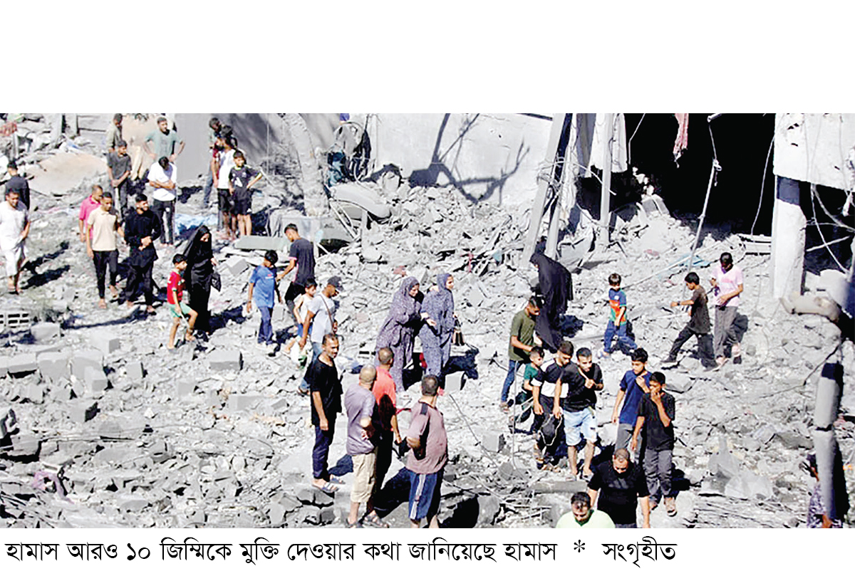 ফিলিস্তিনের গাজা উপত্যকায় চলমান যুদ্ধবিরতি প্রচেষ্টার অংশ হিসেবে ইসরায়েলের ১০ বন্দিকে শর্তসাপেক্ষে মুক্তি দিতে সম্মত হয়েছে ফিলিস্তিনি প্রতিরোধ সংগঠন হামাস। আলোচনা ‘কঠিন’ পর্যায়ে রয়েছে জানিয়ে হামাস বলেছে, ইসরায়েল এখনও ‘একগুঁয়েমি’ দেখিয়ে যাচ্ছে।