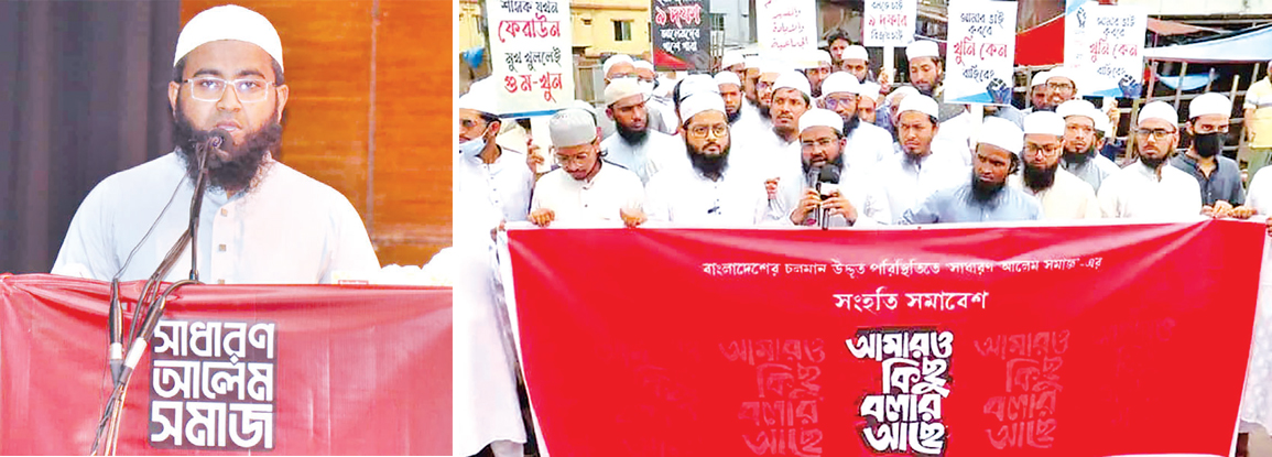 আশরাফুল হক : পতিত সরকারের অরাজকতার প্রতিবাদে চব্বিশের ১৮ জুলাই তরুণ আলেমদের নিয়ে সংহতি সমাবেশ করে বিবৃতি দেওয়া হলো। তখন থেকেই মূলত ‘সাধারণ আলেম সমাজ’ তরুণ আলেমদের নিয়ে একটি শক্তি তৈরি করে। ইসলামি মূল্যবোধ ও ধর্মীয় চেতনার ভিত্তিতে গড়ে ওঠা ‘সাধারণ আলেম সমাজ’ ছিল এ আন্দোলনের অরাজনৈতিক শক্তি। সংগঠনটির কনভেনার মাওলানা রিদওয়ান হাসানের নেতৃত্বে আলেম, মাদ্রাসাশিক্ষার্থী এবং সাধারণ ধর্মপ্রাণ জনগণ ফ্যাসিবাদী শাসনের বিরুদ্ধে শক্ত প্রতিরোধ গড়ে তোলেন। তাবলিগি চেতনায় তাদের কর্মসূচি বা ধর্মীয় আবহে রাজপথ ধরে রাখার কৌশল ছিল অত্যন্ত কার্যকর। আলেম সমাজের এ উদ্যোগ একদিকে যেমন আন্দোলনের স্থায়িত্বকে নিশ্চিত করেছে, অন্যদিকে ইসলামি চেতনাকে রাজনীতির কেন্দ্রে নিয়ে এসেছে। এর উদ্যোক্তাদের মধ্যে রয়েছেন- যাত্রাবাড়ি মাদ্রাসার শিক্ষক মাওলানা রিদওয়ান হাসান, নুরুল কোরআন একাডেমির পরিচালক মাওলানা আবদুল্লাহ মাসউদ, ইসলামি লেকচারার মাওলানা তানজিল আরেফীন আদনান এবং লেখক ও সাংবাদিক মাওলানা রকিব মুহাম্মদ। পারস্পরিক যোগাযোগের অংশ হিসেবে সূচনাতেই আমার সঙ্গে যোগাযোগ হয়। আমরা প্রথম যখন সংহতি সমাবেশ করি, তখনও আমাদের সুবিন্যস্ত কমিটি ছিল না। পরবর্তীতে একটি কমিটি করি। এ কমিটিতে আহ্বায়ক হন মাওলানা রিদওয়ান হাসান, যুগ্ম আহ্বায়ক হন আবদুল্লাহ আল মাসউদ, তানজীল আরেফিন আদনান, মুহিম মাহফুজ, আশরাফ মাহদী, ফরিদাবাদ মাদ্রাসার বর্তমান মুঈনে মুহতামিম মানযুর হাসান যুবায়ের, জামিয়া মুহিউচ্ছুন্নাহর পরিচালক মাছুম বিল্লাহ মাহমুদী, আতিকুর রহমান, যাত্রাবাড়ি মাদ্রাসার শিক্ষক হারুনুর রশিদ নোমানি এবং আমি। সদস্য সচিব হন রকিব মুহাম্মদ।