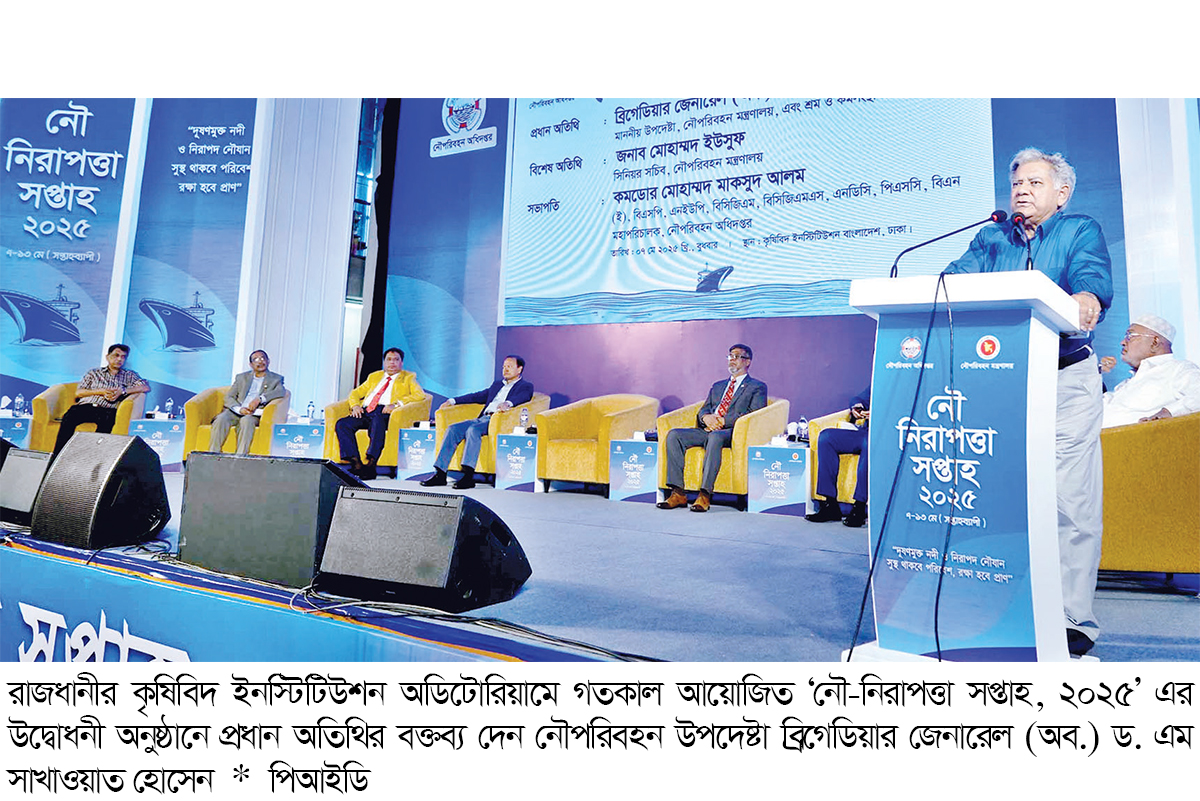 দেশের অভ্যন্তরীণ নৌপথসমূহের নৌ-নিরাপত্তা নিশ্চিতকরণে বর্তমান সরকার বদ্ধপরিকর বলে জানিয়েছেন নৌপরিবহন এবং শ্রম ও কর্মসংস্থান উপদেষ্টা ব্রিগেডিয়ার জেনারেল (অব.) ড. এম সাখাওয়াত হোসেন। তিনি বলেন, নৌ-নিরাপত্তা নিশ্চিতকল্পে নৌপরিবহন মন্ত্রণালয় এরইমধ্যে বিভিন্ন পদক্ষেপ গ্রহণ করেছে। গতকাল বুধবার রাজধানীর কৃষিবিদ ইনস্টিটিউশন অডিটোরিয়ামে নৌপরিবহন অধিদপ্তর আয়োজিত ‘নৌ-নিরাপত্তা সপ্তাহ, ২০২৫’ এর উদ্বোধনী অনুষ্ঠানে প্রধান অতিথির বক্তব্যে তিনি একথা বলেন। অনুষ্ঠানে উপদেষ্টা বলেন, ফিটনেস বিহীন নৌযান চলাচল বন্ধে নিয়মিত অভিযান পরিচালনা করা হচ্ছে। সব নৌযানের রুট পারমিট ও লাইসেন্স গ্রহণ ও নবায়নের বিষয়ে কঠোরভাবে মনিটরিং করতে সংশ্লিষ্টদের নির্দেশনা দেয়া হয়েছে। তিনি আরও বলেন, অতিরিক্ত যাত্রী বা পণ্যবোঝাই না করতে নৌযান মালিকদের সতর্ক করা হয়েছে। রাতে বাল্কহেড চলাচল বন্ধ করা হয়েছে। নদীর নাব্য বজায় রাখতে বিআইডব্লিউটিএ নিয়মিত ড্রেজিং কার্যক্রম পরিচালনা করছে- উল্লেখ করে উপদেষ্টা বলেন, নৌপথের নিরাপত্তা নিশ্চিত করার জন্য অপরাধপ্রবণ অঞ্চলগুলোতে আইনশৃঙ্খলা বাহিনীর বিশেষ টহলের ব্যবস্থা করা হয়েছে। নিয়মিত মোবাইল কোর্ট পরিচালনা করা হচ্ছে এবং ঘাটসমূহে চাঁদাবাজি বন্ধে আইন শৃঙ্খলা বাহিনীকে নির্দেশ দেওয়া হয়েছে। তিনি আরও বলেন, আমাদের একটি গভীর সমুদ্র বন্দরসহ মোট ৪টি সমুদ্র বন্দর রয়েছে। বর্তমান সরকার দায়িত্ব গ্রহণের পরপরই দেশেই প্রত্যন্ত অঞ্চলে পর্যন্ত নৌপথকে সম্প্রসারিত করার উদ্যোগ গ্রহণ করে। বর্তমানে পণ্য পরিবহনে শতকরা ৮০ ভাগ নৌপথের মাধ্যমে পরিবহন করা হচ্ছে। এরইমধ্যে সন্দীপ ও মহেশখালীতে সরাসরি ফেরি সার্ভিস চালু করা হয়েছে। বাংলাদেশ শিপিং কর্পোরেশন সমুদ্রপথে আন্তর্জাতিক নৌবাণিজ্য বৃদ্ধিতে গুরুত্বপূর্ণ ভূমিকা পালন করছে উল্লেখ করে উপদেষ্টা বলেন, আন্তর্জাতিক নৌবাণিজ্য বৃদ্ধির লক্ষ্যে ৪টি জাহাজ কেনার উদ্যোগ নেয়া হয়েছে। এর মাধ্যমে আরও বেশি কর্মসংস্থান ও বৈদেশিক মুদ্রা অর্জনের পথ সুগম হবে। তিনি আরও বলেন, এলপিজি কনটেইনার জাহাজ কেনার পরিকল্পনা রয়েছে সরকারের। নদীমাতৃক বাংলাদেশের নৌপথে চলাচলরত যাত্রী সাধারণ ও মালামালের নিরাপত্তা বিধান এবং সচেতনতা বৃদ্ধির লক্ষ্যে নৌপরিবহন অধিদপ্তরের উদ্যোগে গতকাল বুধবার থেকে আগামী ১৩ মে পর্যন্ত সপ্তাহব্যাপী নৌ-নিরাপত্তা সপ্তাহ পালন করা হচ্ছে। এবারের নৌ-নিরাপত্তা সপ্তাহ ২০২৫ এর প্রতিপাদ্য- ‘দূষণমুক্ত নদী ও নিরাপদ নৌযান, সুস্থ থাকবে পরিবেশ, রক্ষা হবে প্রাণ।’ উদ্বোধনী অনুষ্ঠানে নৌপরিবহন অধিদপ্তরের মহাপরিচালক কমোডর মোহাম্মদ মাকসুদ আলমের সভাপতিত্বে বিশেষ অতিথির বক্তব্য প্রদান করেন 