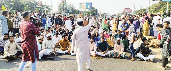 শরিফ ওসমান হাদি হত্যার প্রতিবাদে শাহবাগে সড়ক অবরোধ