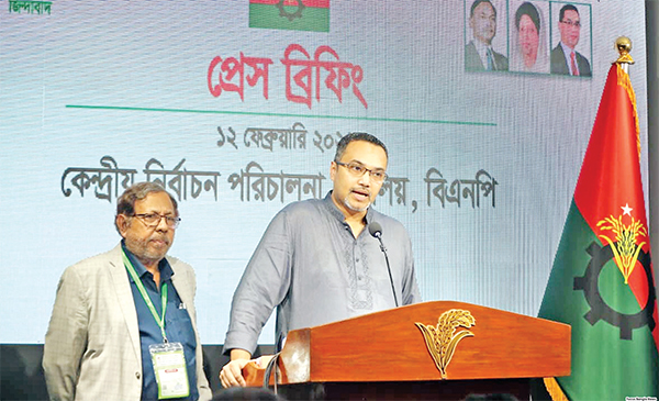বিএনপির জাতীয় সংসদ নির্বাচন পরিচালনা কমিটির মুখপাত্র ও দলের চেয়ারম্যানের উপদেষ্টা মাহদী আমিন গতকাল বৃহস্পতিবার রাজধানীর গুলশানে দলের কেন্দ্রীয় নির্বাচন পরিচালনা কার্যালয়ে সংবাদ সম্মেলনে বক্তব্য রাখেন * আলোকিত বাংলাদেশ