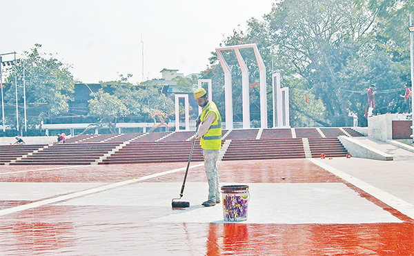 ২১ ফেব্রুয়ারি আন্তর্জাতিক মাতৃভাষা দিবস উপলক্ষে কেন্দ্রীয় শহীদ মিনারে চলছে সৌন্দর্যবর্ধন ও সিসি ক্যামেরা স্থাপনের কাজ। গতকালের ছবি * সংগৃহীত