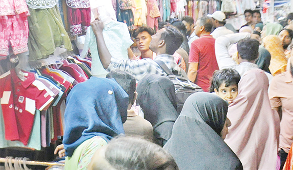 ঈদুল ফিতর সামনে রেখে জমে উঠেছে রাজধানীর বিপণি বিতান ও আশপাশের দোকানগুলো। ছবিটি গতকাল মৌচাকের সেন্টার পয়েন্ট শপিংমল থেকে তোলা * আলোকিত বাংলাদেশ