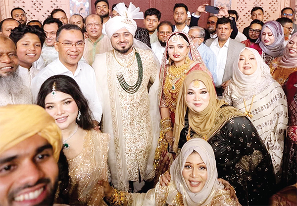 মুন্সীগঞ্জ-১ আসনের সংসদ সদস্য শেখ মো. আবদুল্লাহর বড় মেয়ে শেখ আজিজা বিনতে আবদুল্লাহর বিয়েতে উপস্থিত ছিলেন প্রধানমন্ত্রী তারেক রহমান। ৫ এপ্রিল রাতে চীন মৈত্রী সম্মেলনে কেন্দ্রে অনুষ্ঠিত এই বিয়েতে প্রধানমন্ত্রী ছাড়াও মন্ত্রী, এমপি, ব্যবসায়ীসহ বিশিষ্টজনরা উপস্থিত ছিলেন * আলোকিত বাংলাদেশ