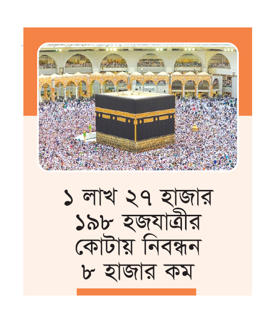 হজ নিবন্ধনের শেষ দিন গত বুধবার রাতে দেখা যায়, বাংলাদেশের হজযাত্রীদের জন্য সৌদি আরবের নির্ধারিত কোটা পূরণে আরও ৮ হাজারের বেশি নিবন্ধন বাকি রয়েছে।