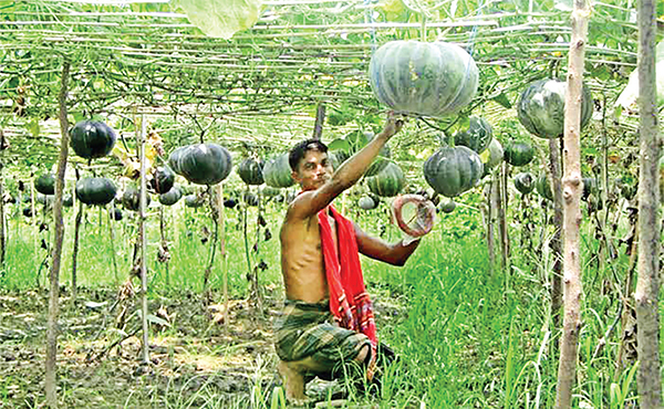 বিশ্বের বৃহত্তম ম্যানগ্রোভ বন সুন্দরবনের উপকূলীয় বাগেরহাটের মোরেলগঞ্জ শস্যভাণ্ডার নামে খ্যাত উর্বর ভূমি মৎস্য ঘেরের ভেড়িতে মিষ্টি কুমড়া চাষে বাম্পার ফলন, কৃষকের মুখে হাসি। ঘেরের ভেড়িতে মিষ্টি কুমড়ার স্বাদ বেশি। ফলে রাজধানী ঢাকার কাওরান বাজারসহ দেশের বিভিন্ন স্থানে মোরেলগঞ্জের মিষ্টি কুমড়া বাজারজাত করা হচ্ছে। খেতেই কুমড়ার কেজি বিক্রি হচ্ছে ১৫ থেকে ২০ টাকায়। প্রতিটি কুমড়া ওজন ভেদে বিক্রি হচ্ছে ৬০ থেকে ৮০ টাকায়। সরেজমিনে গিয়ে দেখা যায়, বাগেরহাটের মোরেলগঞ্জ উপজেলার ১৬টি ইউনিয়নে মৎস্য ঘেরের ভেড়িতে পুরো গ্রামজুড়ে মিষ্টি কুমড়ার মাঁচা। সবুজ পাতায় ঘেরা এই মাঁচার নিচে ঝুলছে মিষ্টি কুমড়া। কৃষকরা মাঁচা থেকে মিষ্টি কুমড়া সংগ্রহ করছেন। শুধু তাই নয়, স্থানীয় চাহিদা মিটিয়ে এই গ্রামের মিষ্টি কুমড়া পাইকারদের হাত ধরে চলে যাচ্ছে সারাদেশে। গ্রামটির মিষ্টি কুমড়া সারাদেশে বেশ চাহিদা রয়েছে। মৌসুমে উপজেলায় প্রায় কোটি টাকার শীতকালীন আগাম সবজি উৎপাদনের লক্ষ্যমাত্রা ধরা হয়েছে। সবজি উৎপাদনে নতুন প্রযুক্তি ব্যবহারে সফলতা পেয়েছে বলে মনে করছে কৃষক ও কৃষি বিভাগ। ফলে ভালো উৎপাদনের পাশাপাশি মোরেলগঞ্জে গড়ে উঠেছে সবজির বাজার। সারা বছরই মোরেলগঞ্জে সবজির আবাদ হয়। ফড়িয়া ও পাইকারি ব্যবসায়ীরা ঢাকাসহ বিভিন্ন জেলা থেকে এসে দরদাম করে ট্রাকযোগে তা নিয়ে যাচ্ছে। মোরেলগঞ্জ রিপোর্টার্স ইউনিটি সভাপতি এসএম সাইফুল ইসলাম কবির বলেন, কৃষককে সার, বীজ ও প্রশিক্ষণ দিয়ে বিভিন্ন সময় সহযোগিতা করে কৃষি বিভাগ। বিভিন্ন সীড কোম্পানি পক্ষ থেকে মাঝেমধ্যে সার ও বীজ দিয়ে গরিব কৃষকদের সহযোগিতা করতে হবে। মোরেলগঞ্জ উপজেলা কৃষি কর্মকর্তা মো. সাইফুল ইসলাম বলেন, মৎস্য ঘেরের ভেড়িতে মিষ্টি কুমড়া চাষে উপকরণ সহায়তা প্রদান শীর্ষক উপ-প্রকল্পের আওতায় ২০০ জন চাষি ২০৫ হেক্টর জমিতে কুমড়া চাষ করেছে। তাদের বীজ, রাসায়নিক সার প্রদানসহ পোকাণ্ডমাকড় দমনে নানা উপকরণ সহায়তা করা হয়েছে।’
