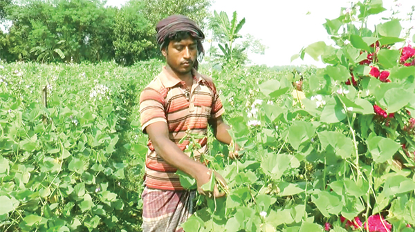 মেহেরপুরে বেশ কয়েক বছর থেকে আগাম শিমের চাষ করছেন কৃষকরা। শীত আসার আগেই এসব শিম বাজারে উঠতে শুরু করে। এ বছরও বাজারে শিম বিক্রি শুরু হয়েছে ২০-২৫ দিন আগে থেকেই। চাহিদার তুলনাই উৎপাদন কম হওয়ায় সবজির বাজার চড়া। বর্তমান বাজারে প্রতি কেজি শিম বিক্রি হচ্ছে ২০০ থেকে ২২০ টাকা দরে। জেলার বাইরে সবজির সরবরাহ বেড়ে যাওয়ায় দামও বাড়ছে। এ বছর বন্যাকবলিত এলাকার সবজি নষ্ট হওয়ার কারণে ব্যবসায়ীরা মেহেরপুরের বাজারে সবজি কিনতে ভিড় করছে। যার কারণে সবজির দাম বেশি বলে জানান সবজির কমিশন আড়তদাররা। কৃষি বিভাগের হিসেবে এবার জেলায় ৩৭০ হেক্টর জমিতে আগাম শিম চাষ হয়েছে। সদর উপজেলার নতুন দরবেশপুর গ্রামের কৃষক আবদাল হোসেন বলেন, এবছর অতিবৃষ্টির কারণে শিমের গাছ কিছুটা ক্ষতিগ্রস্ত হলেও জমির পানি দ্রুত নেমে যাওয়ায় এখন ফুল ফল যথেষ্ট পরিমাণে দেখা যাচ্ছে। প্রায় ২০-২৫ দিন আগে থেকেই মেহেরপুরের বাজারে শিম বিক্রি শুরু হয়েছে। তবে এবার অতিমাত্রায় ছত্রাকনাশক প্রয়োগ করতে হয়েছে। একই গ্রামের কৃষক রবিউল ইসলাম বলেন, বৃষ্টির কারণে গাছ কিছুটা দুর্বল হয়ে পড়ে। এখন ছত্রাকনাশক, সুষম সার প্রয়োগ ও প্রয়োজনীয় পরিচর্যায় শিমের ফলন খুব ভালো হচ্ছে। দুই থেকে আড়াই মণ পর্যন্ত শিম উত্তোলন ও বাজারজাত করা চলবে। কাঙ্ক্ষিত দাম পাওয়ায় অনেকেই অর্থনৈতিকভাবে স্বাবলম্বী হবে। আমদহ গ্রামের কৃষক আবেদ আলী বলেন, এক বিঘা জমিতে শিম চাষে খরচ হয়েছে ২০ হাজার টাকা। বর্তমানে শিম বিক্রি হচ্ছে ২০০ থেকে ২২০ টাকা কেজি দরে। দাম ভালো থাকায় খরচ বাদে লাখ টাকা ঘরে আসবে বলে আশা করছেন তিনি। জেলা কৃষি সম্প্রসারণ অধিদপ্তর মেহেরপুরের উপ-পরিচালক বিজয় কৃষ্ণ হালদার বলেন, আগাম শিম চাষ মেহেরপুর জেলায় বেশ জনপ্রিয়তা অর্জন করেছে। জেলায় বিস্কুট জাতের শিম চাষ বেশি হয়ে থাকে। চাষিদের পরিমিত কীটনাশক ও ছাত্রাকনাশক প্রয়োগ করে শিম চাষের পরামর্শ দেয়া হচ্ছে। এসময় সবজির দাম ও চাহিদা বেশি থাকায় সব ধরনের সবজি চাষে কৃষিবিভাগ সহায়তা প্রদান করছে। এবছর শিমের উৎপাদন ও দাম ভালো পাওয়ায় আগামীতে শিম চাষ আরো বৃদ্ধি পাবে।