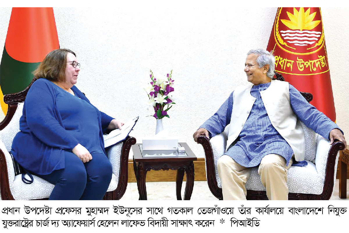প্রধান উপদেষ্টা লাফেভকে একজন শীর্ষ কূটনীতিক হিসেবে তার সেবার প্রশংসা করেন এবং একটি গুরুত্বপূর্ণ সময়ে বাংলাদেশ-মার্কিন সম্পর্ক এগিয়ে নিতে তার আন্তরিক প্রচেষ্টার প্রশংসা করেন। জুলাই-আগস্টে ছাত্র-নেতৃত্বাধীন গণ-অভ্যুত্থানের সময় তার স্মৃতি বর্ণনা করার সময় হেলেন লাফেভ বলেন, আমি ইতিহাসের সাক্ষী হয়ে খুব গর্বিত। চার্জ ডি’অ্যাফেয়ার্স সেক্রেটারি অফ স্টেট এন্টনি ব্লিঙ্কেনের একটি চিঠি অধ্যাপক ইউনূসের কাছে হস্তান্তর করেছেন। বৈঠকে রাষ্ট্রদূত অধ্যাপক ইউনূসকে বলেন, যুক্তরাষ্ট্র রোহিঙ্গাদের বাংলাদেশ ক্যাম্প থেকে উত্তর আমেরিকার দেশে পুনর্বাসনের কাজ ত্বরান্বিত করছে। তাদের আলোচনায় বিচারিক সংস্কার, দক্ষিণ এশীয় বিদ্যুৎ সংযোগ, সন্ত্রাসবাদ প্রতিরোধ, স্বৈরশাসনের সময় বাংলাদেশ থেকে চুরি হওয়া কয়েক বিলিয়ন ডলার প্রত্যাবাসনের প্রচেষ্টা, বেসামরিক আমলাতন্ত্রের সংস্কার এবং শ্রম সমস্যাগুলোও অন্তর্ভুক্ত ছিল বলে বিবৃতিতে জানান। লাফেভ বলেছেন, মার্কিন যুক্তরাষ্ট্র এরইমধ্যে বাংলাদেশকে পরামর্শ ও অন্যান্য সহায়তা দিয়ে অর্থ উদ্ধার এবং তা বাংলাদেশে ফিরিয়ে আনতে সহায়তা করছে। চুরি করা টাকা ফেরত দেয়া কঠিন, কিন্তু এটা সম্ভব ছিল।