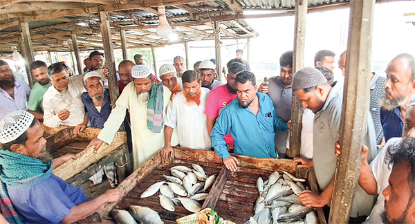 ক্রেতা-বিক্রেতায় মুখরিত ইলিশের আড়ত