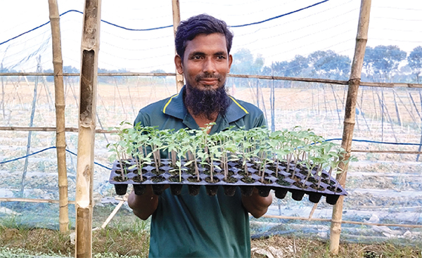 তিনি আরো বলেন, আমার এই চারা দেশের বিভিন্ন জায়গায় যায়। আমার কাছে অগ্রিম অর্ডার দিয়ে অনেকেই চারা নিয়ে যায়। উপজেলা কৃষি অফিসার দেবাশীষ দাস বলেন, আধুনিক এই পদ্ধতিতে অল্প জমিতে স্বল্প খরচে গুণগত মানসম্পন্ন অধিক চারা উৎপাদন করে কৃষক লাভবান হয়। চারা সম্পূর্ণ মাটিবিহীন উৎপাদন হওয়ায় মাটিবাহিত কোনো রোগ হয় না। চারা নেটশেডে ঢাকা থাকায় পর্যাপ্ত আলো-বাতাস প্রবেশ নিশ্চিত হয় ও ক্ষতিকারক পোকা-মাকড় থেকে সবজি চারা রক্ষা পায়।