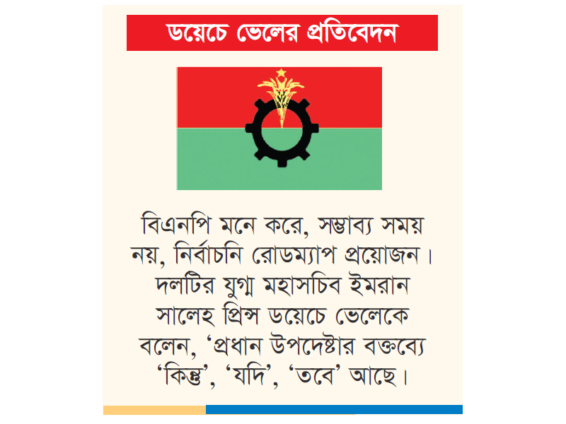 প্রধান উপদেষ্টার নির্বাচনের ঘোষণাকে ইতিবাচক বললেন রাজনীতিকরা। তবে বিএনপির দাবি, সম্ভাব্য সময় নয়, সুনির্দিষ্ট রোডম্যাপ দিতে হবে। আর ‘ফ্যাসিস্ট’দের বিচারের আগে নির্বাচনে আপত্তি বর্তমান সরকারের সময় গঠিত জাতীয় নাগরিক কমিটির। জাতীয় পার্টি (এরশাদ) বলছে, নির্বাচন গ্রহণযোগ্য করতে হলে সেটা অবশ্যই হতে হবে অন্তর্ভুক্তিমূলক। ছাত্র-জনতার অভ্যুত্থান-পরবর্তী প্রথম মহান বিজয় দিবস উপলক্ষে গত সোমবার জাতির উদ্দেশে দেয়া ভাষণে ড. ইউনূস বলেছেন, ‘মোটাদাগে বলা যায়, ২০২৫ সালের শেষ দিক থেকে ২০২৬ সালের প্রথমার্ধের মধ্যে নির্বাচনের সময় নির্ধারণ করা যায়। আমি সকল প্রধান সংস্কারগুলো সম্পন্ন করে নির্বাচন আয়োজন করার ব্যাপারে বারবার আপনাদের কাছে আবেদন জানিয়ে এসেছি। তবে রাজনৈতিক ঐকমত্যের কারণে আমাদের যদি, আবার বলছি ‘যদি’, অল্প কিছু সংস্কার করে ভোটার তালিকা নির্ভুলভাবে তৈরি করার ভিত্তিতে নির্বাচন সম্পন্ন করতে হয়, তাহলে ২০২৫ সালের শেষের দিকে নির্বাচন অনুষ্ঠান হয়তো সম্ভব হবে। আর যদি এর সঙ্গে নির্বাচন প্রক্রিয়া এবং নির্বাচন সংস্কার কমিশনের সুপারিশের পরিপ্রেক্ষিতে এবং জাতীয় ঐকমত্যের ভিত্তিতে প্রত্যাশিত মাত্রার সংস্কার যোগ করি, তাহলে অন্তত আরো ছয় মাস অতিরিক্ত সময় লাগতে পারে। মোটাদাগে বলা যায়, ২০২৫ সালের শেষ দিক থেকে ২০২৬ সালের প্রথমার্ধের মধ্যে নির্বাচনের সময় নির্ধারণ করা যায়।’ স্থানীয় সরকার বিশেষজ্ঞ ড. তোফায়েল আহমেদ ডয়চে ভেলেকে বলেন, ‘প্রধান উপদেষ্টা যে সময় নির্ধারণ করেছেন সেটা আমার কাছে যৌক্তিক মনে হয়েছে। কারণ, ৪টি কমিশনের রিপোর্ট তিনি জানুয়ারির মধ্যে পেয়ে যাবেন। আর কয়েকটি কমিশনের রিপোর্ট পেতে দুই মাস দেরি হতে পারে। এরপরও যে সময় থাকবে তাতে কমিশনের সুপারিশ বাস্তবায়ন সম্ভব। অধ্যাদেশের মাধ্যমে সরকার ৮০ ভাগ ক্ষেত্রে সিদ্ধান্ত দিতে পারবে। শুধু সংবিধানের ব্যাপারে সিদ্ধান্ত দেওয়া যাবে না। এখন যে গতিতে সংস্কার কাজ চলছে, সেটার গতি আর একটু বাড়াতে হবে। তাহলে আমার মনে হয় প্রধান উপদেষ্টা ঘোষিত সময়ের মধ্যে যৌক্তিক নির্বাচন সম্ভব।’ বিএনপি মনে মনে, সম্ভাব্য সময় নয়, নির্বাচনি রোডম্যাপ প্রয়োজন। দলটির যুগ্ম মহাসচিব ইমরান সালেহ প্রিন্স ডয়চে ভেলেকে বলেন, ‘প্রধান উপদেষ্টার বক্তব্যে ‘কিন্তু’, ‘যদি’, ‘তবে’ আছে। আমরা এগুলো শুনতে চাই না। তারপরও বলব, তিনি যে একটা সময় অন্তত বলেছেন সেটাকে আমরা সাধুবাদ জানাই। আমরা মনে করি, জরুরি যেসব সংস্কারের প্রয়োজন সেগুলো এর মধ্যেই করা সম্ভব। একই সঙ্গে সংস্কার কাজও চলবে, আবার নির্বাচনের প্রস্তুতিও চলবে। সেভাবেই সরকার এগুবে বলে দেশের মানুষ প্রত্যাশা করেন। তাই আমরা সুনির্দিষ্ট রোডম্যাপ দেয়ার দাব