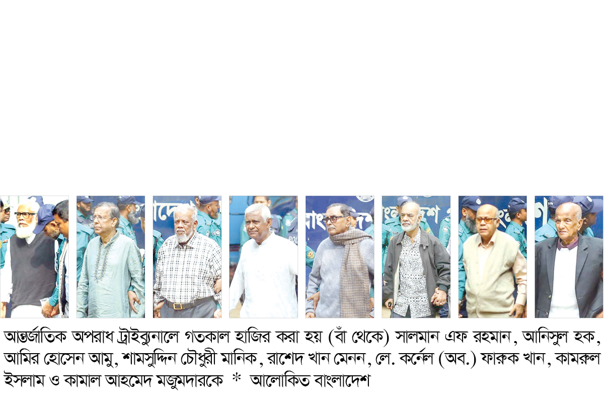 গতকাল মঙ্গলবার শুনানি চলাকালে আদালতে উপস্থিত ছিলেন প্রবীণ আইনজীবী জেড আই খান পান্না, আন্তর্জাতিক অপরাধ ট্রাইব্যুনালের প্রসিকিউটর মো. মিজানুল ইসলাম, বিএম সুলতান মাহমুদ, গাজী এমএইচ তামিম, তারেক আব্দুল্লাহ, শাইখ মাহাদী, আব্দুল্লাহ আল নোমানসহ আরো অনেকে। শুনানি শেষে এক প্রেস ব্রিফিংয়ে চিফ প্রসিকিউটর বলেন, ‘জাতিসংঘের রিপোর্টটিতে উঠে এসেছে যে বাংলাদেশে এক যোগে সংঘটিত এই হত্যাকাণ্ড পূর্ব পরিকল্পিত এবং শেখ হাসিনার নির্দেশে করা হয়েছে। এর সঙ্গে জড়িত হিসেবে তৎকালীন স্বরাষ্ট্রমন্ত্রী আসাদুজ্জামান খান কামাল এবং ওবায়দুল কাদেরসহ আওয়ামী লীগের বিভিন্ন অঙ্গ সংগঠন যেমন ছাত্রলীগ, যুবলীগ এবং সেই সঙ্গে পুলিশ বাহিনীর সক্রিয় ভূমিকার প্রত্যক্ষ প্রমাণ দেয়া হয়েছে। আমাদের মনে হয়েছে তদন্ত রিপোর্টটিকে শক্তিশালী করতে জাতিসংঘের রিপোর্টের তথ্যগুলো এতে সম্পৃক্ত করা প্রয়োজন। যে কারণে আমরা জাতিসংঘের কাছে এই প্রমাণগুলো চেয়েছি।’ তিনি বলেন, ‘যেহেতু জাতিসংঘের মতো আন্তর্জাতিক একটি সংঘের দ্বারা পক্ষপাতিত্ব করার সম্ভাবনা নেই, তাই আমরা তাদের কাছে যে প্রমাণগুলোর ভিত্তিতে তারা রিপোর্টটি করেছে সে প্রমাণগুলো চেয়েছি এবং সেগুলো সংগ্রহ করার প্রক্রিয়ায় আছি।’ এদিকে জুলাই-আগস্ট মাসে ছাত্র জনতার আন্দোলন চলাকালে গণহত্যা ও মানবতাবিরোধী অপরাধ সংঘটনের অভিযোগে দায়ের করা মামলায় সাবেক ১১ মন্ত্রীসহ ১৬ জনকে মঙ্গলবার সকাল ১০টায় আন্তর্জাতিক অপরাধ ট্রাইব্যুনালে হাজির করা হয়। সকাল ১১টা ২৫ মিনিটে তাদের এজলাসে উপস্থিত করা হয়। তারা হলেন- আনিসুল হক, শাজাহান খান, আমির হোসেন আমু, কামরুল ইসলাম, লে. কর্নেল (অব.) ফারুক খান, আব্দুর রাজ্জাক, রাশেদ খান মেনন, হাসানুল হক ইনু, কামাল আহমেদ মজুমদার, গোলাম দস্তগীর গাজী, ডা. দীপু মনি, জুনাইদ আহমেদ পলক, সাবেক প্রধানমন্ত্রী শেখ হাসিনার দুই উপদেষ্টা সালমান এফ রহমান ও তৌফিক-ই-ইলাহী চৌধুরী, সাবেক বিচারপতি শামসুদ্দিন চৌধুরী মানিক এবং সাবেক স্বরাষ্ট্র সচিব জাহাঙ্গীর আলম। গত বছরের ডিসেম্বরের ১৭ তারিখে উল্লিখিত ১৬ জনকে আন্তর্জাতিক অপরাধ ট্রাইব্যুনালে হাজির করা হয়েছিল। এদিনই ছাত্র-জনতার আন্দোলন দমনে গণহত্যাসহ মানবতাবিরোধী অপরাধের নির্দেশ দেওয়া ও তা বাস্তবায়নের অভিযোগে বিগত সরকারের প্রধানমন্ত্রী শেখ হাসিনার বিরুদ্ধে তদন্ত প্রতিবেদন জমা দিতে দুই মাস সময় মঞ্জুর করে শুনানির জন্য আজকের দিন ধার্য করে আন্তর্জাতিক অপরাধ ট্রাইব্যুনাল। এর আগে ছাত্র-জনতার আন্দোলন দমাতে ‘গণহত্যাসহ মানবতাবিরোধী অপরাধ’ সংঘটনের অভিযোগে গত ১৭ অক্টোবর সাবেক প্রধানমন্ত্রী শেখ হাসিনা ও তার সরকারের সাবেক মন্ত্রী, প্রতিমন্ত্রীসহ ৪৬ জনের বিরুদ্ধে গ্রেপ্তারি পরোয