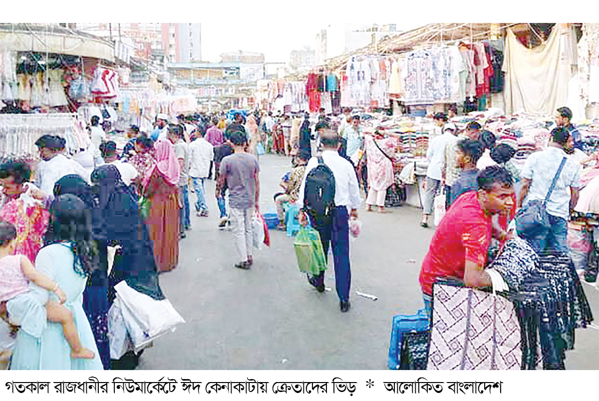 যাদের অধিকাংশই নতুন পোশাক, গহনা, মেকআপ আইটেম এবং অন্যান্য উপহার সামগ্রী কিনছেন। শুধু মার্কেটের ভেতরে নয়, ফুটপাতের ভাসমান দোকানগুলোতেও ঈদের বিভিন্ন পোশাকের ব্যাপক সমারোহ দেখা গেছে। বিভিন্ন পোশাক, স্টাইলিশ জামাকাপড়, জুতা, ব্যাগ এবং সাজসজ্জার নানা উপকরণে ভরপুর মার্কেটের বাইরের দোকানগুলো। পুরো এলাকা এবং মার্কেটে প্রচুর মানুষের ভিড়ের কারণে হাঁটতে হচ্ছে বেশ ধীরগতিতে। আদিবা নামের এক ক্রেতা বলেন, কয়েকদিনের মধ্যে গ্রামে চলে যাবো। তাই সবার জন্য উপহার কিনতে এসেছি। শেষের দিকে কেনাকাটা করছি ভেবেছিলাম ভিড় একটু কমবে। তবে এসে দেখি ভিড় অনেক বেড়েছ। আর বেশি ভিড় দেখে দোকানিরা দাম বেশি চাইছেন। সবকিছুই দামাদামি করে কিনতে হচ্ছে। তাহমিনা নামের আরেক ক্রেতা বলেন, চাকরির জন্য পুরো সপ্তাহে সময় পাই না।