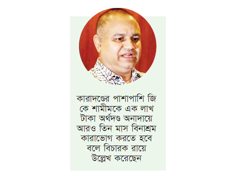 অবৈধ ও জ্ঞাত আয়বহির্ভূত সম্পদ অর্জনের অভিযোগে দুদকের করা মামলায় আলোচিত ঠিকাদার গোলাম কিবরিয়া শামীম ওরফে জিকে শামীমের সাড়ে ৫ বছরের কারাদণ্ড দিয়েছেন আদালত। একই মামলায় তার মা আয়েশা আক্তারকে খালাস দিয়েছেন বিচারক। কারাদণ্ডের পাশাপাশি জি কে শামীমকে এক লাখ টাকা অর্থদণ্ড অনাদায়ে আরও তিন মাস বিনাশ্রম কারাভোগ করতে হবে বলে বিচারক রায়ে উল্লেখ করেছেন। এছাড়া জিকে শামীমের ২৯৭ কোটি ৮ লাখ ৯৯ হাজার টাকার অবৈধ সম্পদ রাষ্ট্রের অনুকূলে বাজেয়াপ্ত করার আদেশ দেয়া হয়েছে।