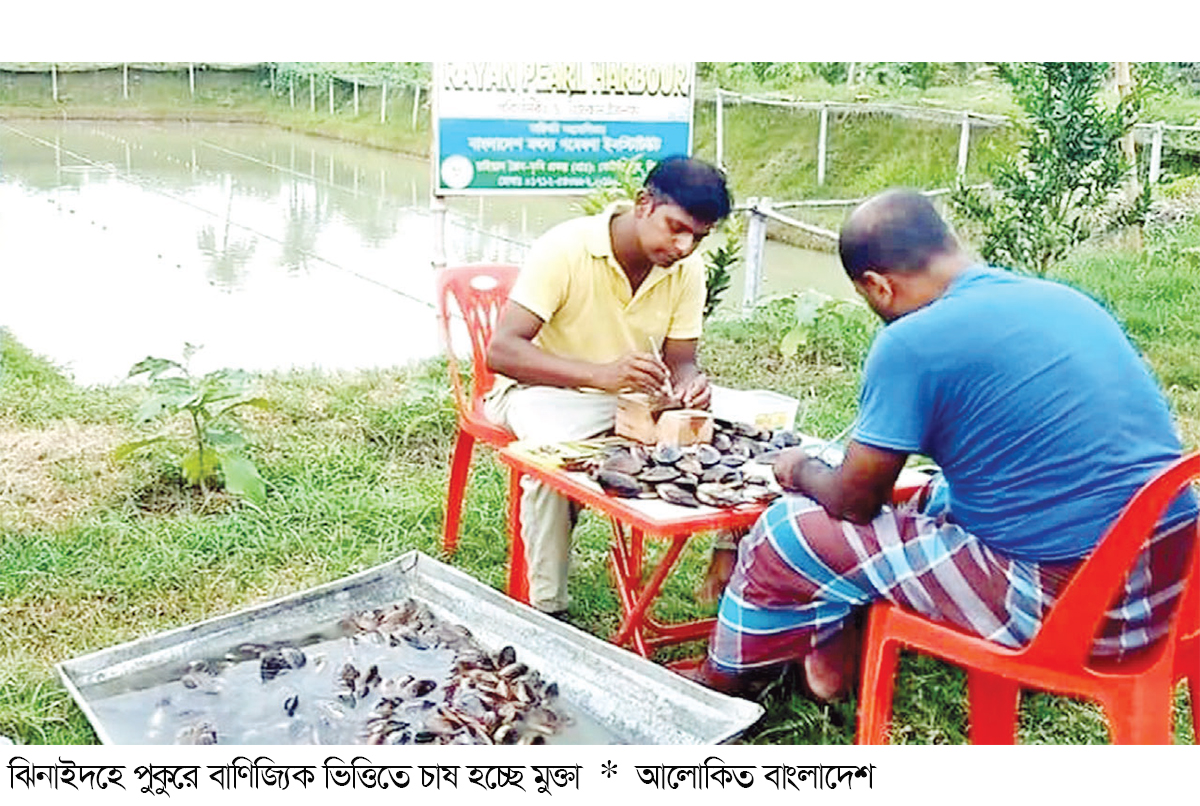 ঝিনাইদহে পুকুরে বাণিজ্যিক ভিত্তিতে চাষ হচ্ছে মুক্তা। এরই মধ্যে জেলার অনেক তরুণ মুক্তা চাষের সম্ভাবনা অনুমান করতে পেরেছেন। অনেকে বাণিজ্যিক ভিত্তিতে মুক্তা চাষে আগ্রহীও হয়ে উঠছেন। সফলতা অর্জনের পাশাপাশি আর্থিকভাবে স্বাবলম্বী হয়ে নিজের ভাগ্য বদলের স্বপ্ন দেখছেন অনেকে। জাপানফেরত ড. নজরুল ইসলাম স্বপ্ন দেখা তরুণদের মধ্যে একজন। তিনি ২০২১ সালে নিজ বাড়ি ঝিনাইদহের কোর্টচাদপুর উপজেলার শিবনগর গ্রামে ৩৩ শতক জমির পুকুরে মুক্তা চাষের একটি প্রকল্প হাতে নেন। পুকুরে কার্প জাতীয় মাছের মিশ্র চাষের পাশাপাশি পুকুরপাড়কে উৎপাদনমুখী করার জন্য বিশেষভাবে প্রস্তুত করে সেখানে এযবাত মুক্তা চাষ করে আসছেন তিনি। পুকুরের পাড়কে ব্যবহার করে মুক্তা চাষে ব্যাপক সম্ভাবনার দৃষ্টান্ত স্থাপনের পাশাপাশি স্বাবলম্বী হয়েছেন রাইয়ান জৈব কৃষি প্রকল্পের পরিচালক ড. নজরুল ইসলাম। সেইসঙ্গে অনেক বেকার যুবকের কর্মসংস্থান সৃষ্টি করেছেন তিনি। প্রতিটি ঝিনুকে মুক্তা চাষ করতে তার খরচ হয় মাত্র ৫০ টাকা। প্রতিটি ঝিনুকে দুইটি করে মুক্তা পাওয়া যায়। প্রতিটি মুক্তার বর্তমান বাজার মূল্য ২০০ থেকে ৫০০ টাকা। খরচ বাদে ঝিনুকপ্রতি সর্বনিম্ন আয় হয় ৪০০ থেকে ৫০০ টাকা। এ সিজনে প্রায় ৫ হাজার ঝিনুকে মুক্তা চাষ হয়েছে। ফলে নিজে লাভবান হওয়ার পাশাপাশি জাতীয় অর্থনীতিও সমৃদ্ধি হবে বলে আশা করেন তিনি। এ বিষয়ে রাইয়ান জৈব কৃষি প্রকল্পের পরিচালক ড. নজরুল ইসলাম বলেন, জাপানের আদলে কীভাবে অল্প জায়গায় অধিক ফসল ফলানো যায় সেটাই মূল লক্ষ্য তার। তিনি ১০ বিঘা জমি থেকে কীভাবে ৩০ বিঘার ফলন পাওয়া যায় সেটা চেষ্টা করে যাচ্ছেন। এবছরেও তিনি ৮ থেকে ১০ লাখ টাকার মুক্তা বিক্রি করতে পারবেন বলেও আশা করেন। মুক্তা বিক্রি করার সঠিক জায়গা না থাকায় কম দামে বিক্রি করতে হচ্ছে। মুক্তা চাষে ও বিক্রিতে সরকারি সহায়তা প্রয়োজন বলে তিনি দাবি করেন। মুক্তা চাষ, বিক্রি ও গবেষণাগার তৈরিতে সরকারি সহযোগিতার জন্য বারবার আবেদন করেও এখনও কোনো ফলাফল পায়নি বলেও অভিযোগ করেন তিনি। যেহেতু ঝিনুকের জন্য বিখ্যাত হওয়ায় এ জেলার নামকরণ হয় ঝিনাইদহ, সেহেতু এখানে মুক্তা চাষ, গবেষণা ও বিক্রির জন্য বিশেষ ব্যবস্থা থাকলে ঝিনুক থেকে মুক্তা চাষে আগ্রহী হবে অনেকে। কোর্টচাদপুরের সিনিয়র উপজেলা মৎস্য কর্মকর্তা দীন ইসলাম জানান, ড. নজরুল ইসলামের মুক্তা চাষ পদ্ধতি খুবই সম্ভাবনাময়। উপজেলা মৎস্য অফিস সবসময় তার পাশে আছে।