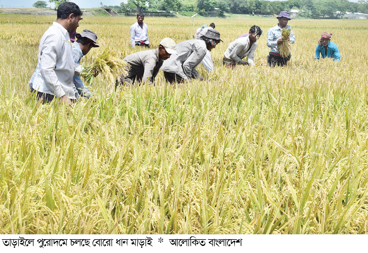 দিগন্ত বিস্তৃত হাওরাঞ্চলে ঢেউ খেলানো পাকা সোনালি বোরো ধান কাটার মহোৎসবে মেতে উঠেছেন কৃষকরা। আকাশে ছুটন্ত মেঘের ভেলা, পাখির কলতান, সারি সারি কুঁড়েঘর, হাওরের বুক চিরে বয়ে যাওয়া নরসুন্ধা নদীতে রাজহংসের জলকেলি ও শিশুদের দুরন্তপনায় চিরন্তন বাংলার প্রকৃতির রূপ যেন এখন কিশোরগঞ্জের তাড়াইল উপজেলার সাতটি ইউনিয়নে আছড়ে পড়েছে। বোরো ধান কাটার মৌসুমে প্রকৃতি যেন সেখানে স্বরূপে জেগে উঠেছে। কাকডাকা ভোর থেকে সন্ধ্যা পর্যন্ত রোদে পুড়ে বৃষ্টিতে ভিজে কষ্ট করে ফলানো ফসল অনেকেই গোলায় তুলছেন। তাতে সব কষ্ট ভুলে কৃষান-কৃষানিরা হাসছেন তৃপ্তির হাসি। এ বছর খরা এবং শিলা বৃষ্টি না হওয়ায় কৃষকরা বোরো চাষ নির্বিঘ্নে করতে পারছেন। কিন্তু অনেক সময় অনাবৃষ্টি ও অকাল বন্যায় পুরো চিত্রই পাল্টে যায়।
