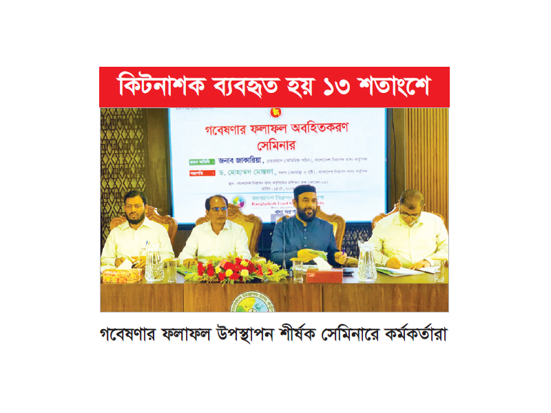 দেশে উৎপাদিত শুঁটকিতে গড়ে ১৩ শতাংশ কীটনাশক ব্যবহৃত হয়। অর্থাৎ ৮৭ শতাংশ শুঁটকিই নিরাপদ। দেশে উৎপাদিত শুঁটকি নিয়ে এক গবেষণায় এ তথ্য পাওয়া গেছে। যে ১৩ শতাংশ শুঁটকিতে কীটনাশক ব্যবহার করা হয়, তাতেও রান্নার পর কীটনাশকের মাত্রা ও ক্ষতির পরিমাণ অনেক কমে যায় বলে গবেষণায় উঠে এসেছে। এছাড়া শুঁটকি লবন পানি দিয়ে ভিজিয়ে রাখলেও ক্ষতির পরিমাণ হ্রাস পায়। দেশে শীর্ষস্থানীয় সামুদ্রিক মাছের শুঁটকি উৎপাদিত হয় চট্টগ্রাম, কক্সবাজার ও দুবলার চরে এবং স্বাদু পানির মাছের শুঁটকি উৎপাদিত হয় নাটোরের চলনবিল ও সুনামগঞ্জে। এসব স্থানের উৎপাদিত শুটকি নিয়ে এই গবেষণা কার্যক্রম পরিচালিত হয়। গবেষণায় আরো দেখা যায়, চট্টগ্রাম ও কক্সবাজার এলাকার মানুষ সব থেকে বেশি খায় ছুরি শুঁটকি (চট্টগ্রাম ৫৭ শতাংশ ও কক্সবাজার ৫৫ শতাংশ), অন্যদিকে চলন বিলের মানুষ টাকি শুটকি বেশি গ্রহণ করে (৩৭ শতাংশ)। আবার সুন্দরবনের দুবলার চর এলাকার মানুষের সবচেয়ে পছন্দের শুঁটকি হলো লইট্ট্যা শুঁটকি (৪৬ শতাংশ)। উপরের ৫টি স্থান থেকে মোট ৪০৫টি নমুনা বিশ্লেষণ করে এসব তথ্য পাওয়া গেছে। বাংলাদেশ নিরাপদ খাদ্য কর্তৃপক্ষ (বিএফএসএ) আয়োজিত গবেষণার ফলাফল অবহিতকরণ সেমিনারে গবেষক দল কর্তৃক গবেষণার ফলাফল উপস্থাপন শীর্ষক সেমিনারে এসব তথ্য জানানো হয়। গতকাল বুধবার রাজধানীর শাহবাগে নিজ কার্যালয়ে সেমিনারটির আয়োজন করে বিএফএসএ। বিএফএসএ’র সদস্য ড. মোহাম্মদ মোস্তফার সভাপতিত্বে সেমিনারে প্রধান অতিথি ছিলেন প্রতিষ্ঠানটির চেয়ারম্যান জাকারিয়া। এতে গবেষণাপত্র উপস্থাপন করেন বাংলাদেশ মৎস্য গবেষণা ইনস্টিটিউট-এর চিংড়ি গবেষণা কেন্দ্রের সিনিয়র সাইন্টিফিক অফিসার ড. মো. আরিফুল ইসলাম, প্যানেল আলোচনায় অংশ নেন শেরে-বাংলা কৃষি বিশ্ববিদ্যালয়ের কৃষি রসায়ন বিভাগের অধ্যাপক ড. মো. তাজুল ইসলাম চৌধুরী, বাংলাদেশ ধান গবেষণা ইনস্টিটিউট-এর প্রিন্সিপাল সাইন্টিফিক অফিসার ড. মো. নাজমুল বারী ও শুভেচ্ছা বক্তব্য রাখেন বিএফএসএ’র সদস্য অধ্যাপক ড. মোহাম্মদ শোয়েব।