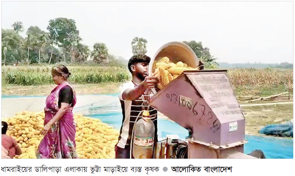 ঢাকার ধামরাইয়ে এবার ভুট্টার বাম্পার ফলন হয়েছে, দামও ভালো। এতে হাসি ফুটেছে প্রান্তিক কৃষকদের মধ্যে। এ বছর আবহাওয়া অনুকূলে থাকায় ভুট্টা বাম্পার ফলন হয়েছে। এরইমধ্যে ভুট্টা ঘরে তুলতে ব্যস্ত সময় পার করছে কৃষকরা। ভুট্টার দামও ভালো। ভুট্টা চাষ ধানের থেকে সহজ এবং শ্রমিক কম লাগায় সবাই ভুট্টা চাষে ঝুঁকছে।