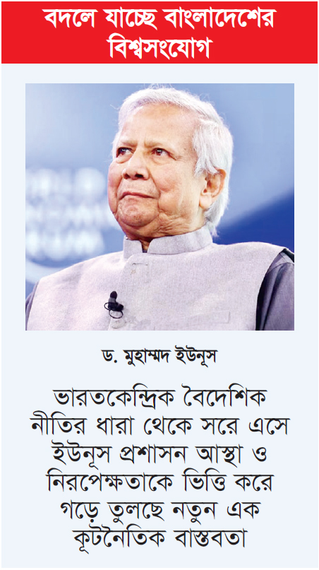 বিশ্লেষকরা একে বলছেন ‘৩৬০ ডিগ্রি কূটনীতি’, যেখানে পূর্ব-পশ্চিম, উত্তর-দক্ষিণ, সবদিকেই ছড়িয়েছে তার কূটনৈতিক উদ্যোগ। আগের ভারতকেন্দ্রিক বৈদেশিক নীতির ধারা থেকে সরে এসে ইউনূস প্রশাসন আস্থা ও নিরপেক্ষতাকে ভিত্তি করে গড়ে তুলছে নতুন এক কূটনৈতিক বাস্তবতা।