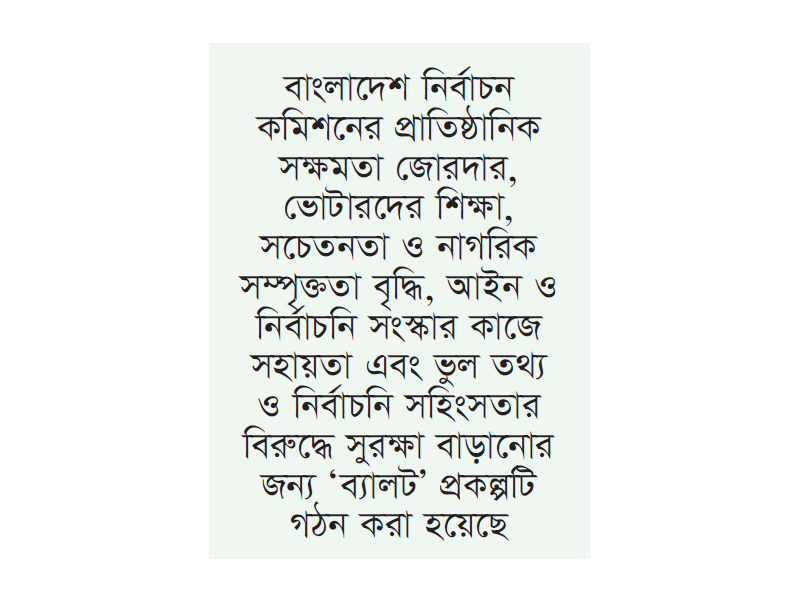 চলমান রাজনৈতিক প্রেক্ষাপটে একটি অবাধ, সুষ্ঠু এবং গ্রহণযোগ্য নির্বাচন আয়োজনে ‘ব্যালট’ নামে তিন বছর মেয়াদি প্রকল্প শুরু হচ্ছে। গতকাল অর্থ মন্ত্রণালয়ের অর্থনৈতিক সম্পর্ক বিভাগ (ইআরডি), বাংলাদেশ নির্বাচন কমিশন (বিইসি) এবং জাতিসংঘ উন্নয়ন কর্মসূচি (ইউএনডিপি) এ সংক্রান্ত একটি চুক্তি সই করেছে। গতকাল ঢাকায় জাতিসংঘ অফিস থেকে পাঠানো সংবাদ বিজ্ঞপ্তিতে এ তথ্য জানানো হয়েছে। বিজ্ঞপ্তিতে বলা হয়, বাংলাদেশ নির্বাচন কমিশনের প্রাতিষ্ঠানিক সক্ষমতা জোরদার, ভোটারদের শিক্ষা, সচেতনতা ও নাগরিক সম্পৃক্ততা বৃদ্ধি, আইন ও নির্বাচনি সংস্কার কাজে সহায়তা এবং ভুল তথ্য ও নির্বাচনি সহিংসতার বিরুদ্ধে সুরক্ষা বাড়ানোর জন্য ‘ব্যালট’ প্রকল্পটি গঠন করা হয়েছে। জাতিসংঘ অফিস জানায়, ব্যালট প্রকল্পটি (২০২৫-২০২৭) তিন বছর মেয়াদি উদ্যোগ- যা দুটি ধাপে কাজ করবে। প্রথম ধাপে আসন্ন নির্বাচনি সহায়তার ওপর জোর দেওয়া হয়েছে। এর মধ্যে রয়েছে প্রযুক্তিগত, কারিগরি প্রস্তুতি এবং ভোটারদের কাছে পৌঁছানো। দ্বিতীয় ধাপের লক্ষ্য সংস্কারকে প্রাতিষ্ঠানিকীকরণ এবং আসন্ন নির্বাচনি কাজের পর গণতান্ত্রিক স্থিতিশীলতা জোরদার করা। প্রকল্পটি বাস্তবায়নে বিইসি, ইউএন উইমেন, ইউনেস্কো এবং সুশীল সমাজ সংস্থাগুলোর সঙ্গে মিলে কাজ করা হবে। অর্থনৈতিক সম্পর্ক বিভাগের (ইআরডি) সচিব মো. শাহরিয়ার কাদের ছিদ্দিকী, বাংলাদেশ নির্বাচন কমিশনের সিনিয়র সচিব আখতার আহমেদ এবং ইউএনডিপি বাংলাদেশের আবাসিক প্রতিনিধি স্টেফান লিলার এই চুক্তি সই করেন। অনুষ্ঠানে অর্থনৈতিক সম্পর্ক বিভাগের অতিরিক্ত সচিব ও জাতিসংঘ উইং প্রধান এ কে এম সোহেল, ইউনেস্কো বাংলাদেশের প্রতিনিধি ড. সুসান ভাইজ, ইউএন উইমেন কান্ট্রি রিপ্রেজেন্টেটিভ গীতাঞ্জলী সিং এবং বাংলাদেশ সরকার ও জাতিসংঘের অন্যান্য ঊর্ধ্বতন কর্মকর্তা উপস্থিত ছিলেন। অনুষ্ঠানে মো. শাহরিয়ার কাদের ছিদ্দিকী বলেন, ‘বাংলাদেশের গণতান্ত্রিক যাত্রার এক গুরুত্বপূর্ণ সন্ধিক্ষণে ইউএনডিপি’র সঙ্গে কাজের এই যৌথ উদ্যোগকে আমরা স্বাগত জানাতে চাই। নির্বাচনি নীতি-নৈতিকতা জোরদার এবং জনগণের প্রত্যাশা পূরণ করে এই প্রকল্পটির লক্ষ্য অর্জনের জন্য জাতীয় প্রতিষ্ঠান, উন্নয়ন সহযোগী এবং অংশীদারদের মধ্যে কার্যকর সমন্বয় সাধন করতে ইআরডি প্রতিশ্রুতিবদ্ধ। বাংলাদেশ নির্বাচন কমিশনের সিনিয়র সচিব আখতার আহমেদ বলেন, ‘ব্যালট প্রকল্পটি একটি গুরুত্বপূর্ণ সময়ে এসেছে— যা স্বচ্ছ, অন্তর্ভুক্তিমূলক এবং সব নাগরিকের জন্য বিশ্বাসযোগ্য নির্বাচন আয়োজনে আমাদেরকে প্রয়োজনীয় কারিগরি এবং প্রাতিষ্ঠানিক সহায়তা প্রদান করবে। স্টেফান লিলার বলেন, ‘ব্যালট প্রকল্পের মাধ্যমে গণতান্ত্রিক শাসন ব্যবস্থাকে এগ