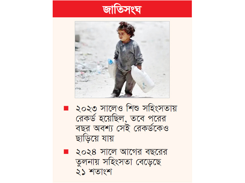 এতে আরও বলা হয়, ২০২৪ সালে শিশুদের বিরুদ্ধে ৪১ হাজার ৩৭০টি গুরুতর সহিংসতার ঘটনার প্রমাণ পাওয়া গেছে। যার মধ্যে ৩৬ হাজার ২২১টিই সংঘটিত হয়েছে ২০২৪ সালে। বাকি ৫ হাজার ১৪৯টি আগের বছরের হলেও তা এ বছর যাচাই করা হয়েছে। এটি গত ৩০ বছরের মধ্যে যা সর্বোচ্চ।