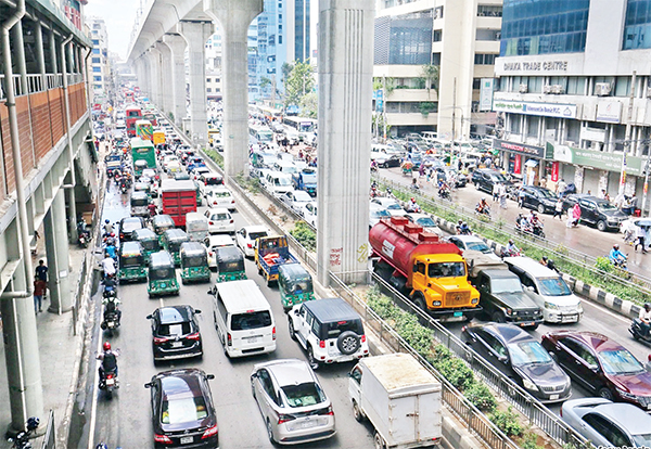 সপ্তাহের শেষ কার্যদিবসে রাজধানীর বিভিন্ন সড়কে দেখা গেছে তীব্র যানজট। এতে অফিসগামী ও ঘরমুখো যাত্রীরা পড়েছেন চরম ভোগান্তিতে। ছবিটি রাজধানীর কারওয়ান বাজার এলাকা থেকে তোলা * আলোকিত বাংলাদেশ