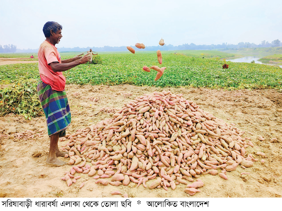 উপজেলা কৃষি অফিস সূত্রে জানা যায়, উপজেলার ধারাবর্ষা, বড়বাড়ীয়া, কৈজুরী, কান্দারপাড়া, সৈয়দপুর, বয়সিংহ, ভাটারা, মোহনগঞ্জ, কাশারীপাড়া, পাখাডুবী, ফুলবাড়িয়া, পারপাড়া, গোপীনাথপুর, কৃষ্ণপুর, চর হরিপুর, আওনা, পোগলদিঘাসহ বিভিন্ন এলাকায় মিষ্টি আলুর চাষ করে কৃষকরা। খরচ কম ও লাভবান হওয়ায় মিষ্টি আলু চাষে ঝুঁকছে চরাঞ্চলের কৃষকরা। উপজেলার কামরাবাদ ও ভাটারা ইউনিয়নে গিয়ে দেখা যায়, বিস্তীর্ণ এলাকাজুড়ে সবুজ পাতায় ছেয়ে আছে ফসলের মাঠ। কৃষকরা কোদাল দিয়ে কুপিয়ে আগলা করছে মাটি। আর নারী ও শিশুরা আলু কুড়িয়ে এক জায়গায় রাখছে। পরে জমানো মিষ্টি আলু খেতে বসেই মেপে বস্তাবন্দি করছে কৃষকরা। কেউ আবার মিষ্টি আলুর লতা গবাদি পশুর খাদ্য হিসেবে বাড়িতে নিয়ে যাচ্ছে ঘোড়ার গাড়ি করে।