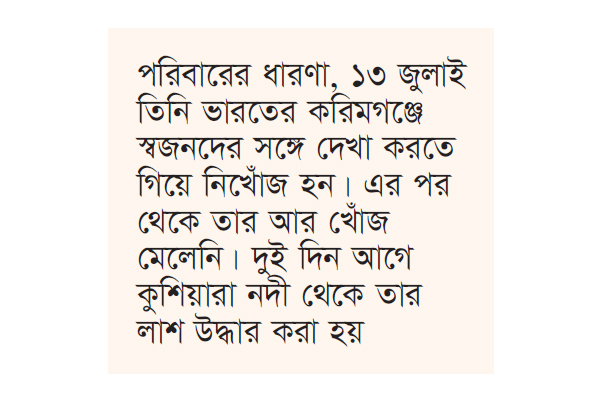 দুই দিন আগে করিমগঞ্জের কুশিয়ারা নদী থেকে একটি অজ্ঞাতনামা লাশ উদ্ধার করে স্থানীয় থানা-পুলিশ। করিমগঞ্জে বসবাসকারী আবদুল মালিকের স্বজনরা লাশটি তার বলে শনাক্ত করেন। পরে ভারতের করিমগঞ্জ থানা-পুলিশ বিএসএফের মাধ্যমে লাশটি বিজিবির কাছে হস্তান্তর করে।