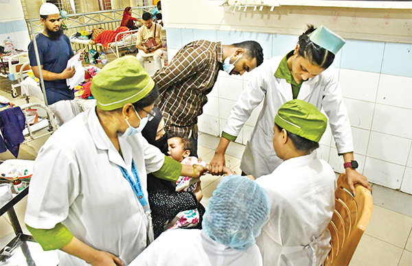 ডেঙ্গু নিয়ে হাসপাতালে বাড়ছে শিশু, কেউ কেউ আক্রান্ত দ্বিতীয়বার। এডিস মশাবাহিত রোগ ডেঙ্গুর প্রকোপ উদ্বেগ ছড়িয়েছে সারা দেশে। শুধু বড়রাই নন, ডেঙ্গুতে আক্রান্ত হচ্ছে শিশুরাও। বিশেষ করে এক থেকে পাঁচ বছর বয়সি শিশুরা। ছবিটি গতকাল মুগদা হাসপাতাল থেকে তোলা * আলোকিত বাংলাদেশ