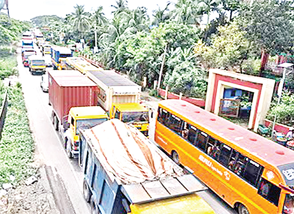 কুমিল্লায় ঢাকা-চট্টগ্রাম মহাসড়কে দীর্ঘ যানজট। গতকাল বৃহস্পতিবার সকালে তোলা ছবি * আলোকিত বাংলাদেশ