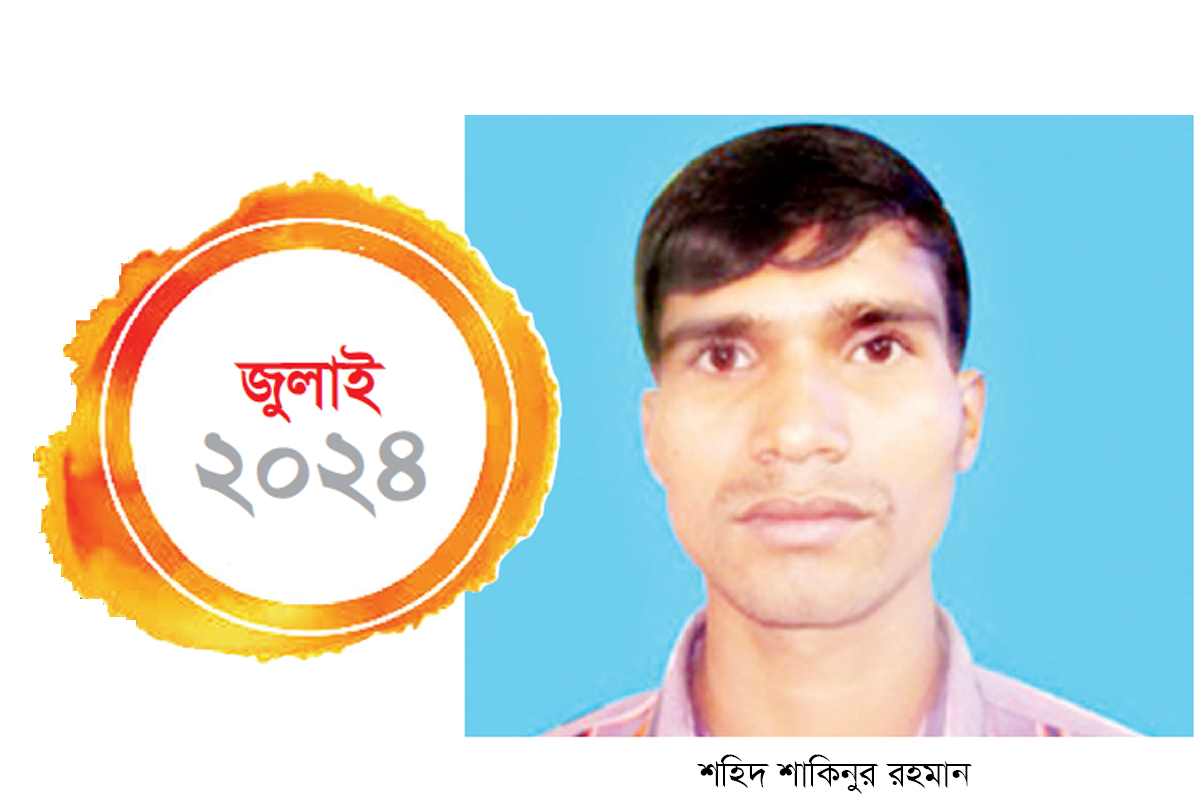 ‘আমি শাকিনুরকে জীবিত অবস্থায় শেষ দেখাও দেখতে পারিনি। মোবাইল মারফত শুনে হাসপাতালে গিয়ে সবুজ কাপড়ে মোড়ানো অবস্থায় তার গুলিবিদ্ধ লাশটি দেখেছি। সে গুলিবিদ্ধ হয়ে শহিদ হয়েছিল তার বুকটা ছিল রক্তে ভেজা।’ কাঁদতে কাঁদতে এসব কথা বলছিলেন শহিদ শাকিনুর রহমানের স্ত্রী মোছাম্মৎ শারমিন আক্তার। গত ৫ আগস্ট আশুলিয়ায় থানার সামনে শান্তিপূর্ণভাবে বিজয় মিছিলে অংশ নিতে গিয়ে গুলিবিদ্ধ হয়ে মৃত্যুবরণ করেন ২৭ বছর বয়সি শাকিনুর রহমান। শেখ হাসিনা পালিয়ে গেছে শুনে বিজয় মিছিলের সঙ্গে আশুলিয়া থানার সামনে জনতা জড়ো হলে হঠাৎই পুলিশের গুলিতে রাস্তায় লুটিয়ে পড়েন অনেকে। তাদেরই একজন ছিলেন শাকিনুর। শহিদ হওয়ার একদিন পর ৬ আগস্ট সকালে গ্রামের বাড়িতে জানাজা শেষে পারিবারিক কবরস্থানে তাকে দাফন করা হয়। গাইবান্ধার পলাশবাড়ী উপজেলার কিশোরগাড়ি গ্রামের শাকিনুর রহমান- একটি নাম, যার পেছনে লুকানো আছে হারিয়ে ফেলা একটি শৈশবের গল্প। তিনি যখন মাত্র সাত বছরের শিশু, তখনই মায়ের স্নেহমাখা ছায়াটি চিরতরে হারিয়ে ফেলেন। বাকি জীবনটা চলে গেছে ‘মা’ ডাকের তীব্র অভাব আর আত্ননির্ভরতা গড়ে তোলার এক নীরব যুদ্ধের মধ্যে দিয়ে। শাকিনুর রহমান ছিলেন ইবনে সাঈদ মন্ডল (৫৭) ও সীমা আক্তারের চার সন্তানের মধ্যে তৃতীয়। অভাব অনটনের মাঝেও এসএসসি পাশ করেছিলেন। এরপর নিজেরই গ্রামের মেয়ে শারমিন আক্তারকে পারিবারিকভাবে বিয়ে করেন শাকিনুর। বিয়ের পর সংসারের হাল ধরতে ২০২০ সালে ঢাকায় আসেন। কাজ নেন আশুলিয়ার শামস গার্মেন্টসে। স্বচ্ছলতার জন্য চাকরির পাশাপাশি স্বল্প পুঁজিতে দোকানে দোকানে গার্মেন্টসের সে সব প্যান্ট সরবরাহ করতেন। শারমিনও বসে থাকেননি, সংসারে বাড়তি আয়ের জন্য প্রাইম বিডি লিমিটেডে ক্যাপ তৈরির কাজ শুরু করেন। স্বামীর সঙ্গে শেষ মুহূর্তের স্মৃতি জানতে চাইলে কাঁদতে কাঁদতে শারমিন আক্তার বললেন, ‘৫ আগস্ট তারিখ ওর সঙ্গে তেমন কোনো স্মৃতি নেই। আমাদের শেষ একসাথে খাওয়া হয়েছিল ৪ তারিখ রাতে। ঘটনার দিন আমি ঘুমিয়ে ছিলাম। সকালে ও একাই খেয়ে বাড়ি থেকে বেরিয়ে যায়।’ ‘৪ তারিখ সেই একসঙ্গে রাতের খাবার খাওয়াটাই এখন আমার হৃদয়ে সবচেয়ে মূল্যবান স্মৃতি হয়ে আছে।’ আমার শিশু সন্তান এতিম হয়েছে।