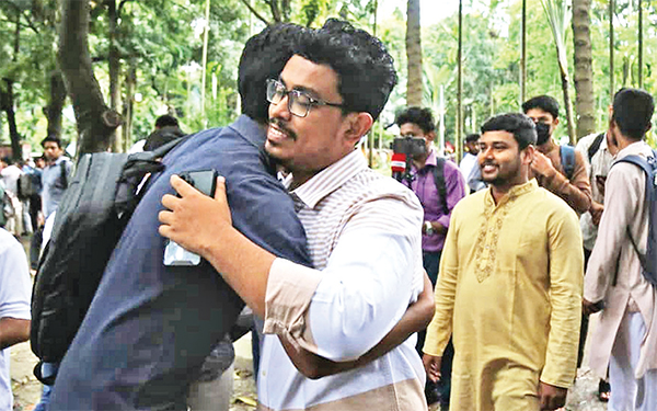 ডাকসু নির্বাচনে ভিপি পদপ্রার্থী সাদিক কায়েম গতকাল রোববার ঢাকা বিশ্ববিদ্যালয় ক্যাম্পাসে ব্যবসায় শিক্ষা অনুষদের সাধারণ শিক্ষার্থীদের সঙ্গে কুশল বিনিময় করেন * আলোকিত বাংলাদেশ