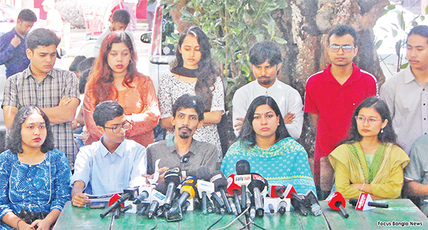 ডাকসু নির্বাচনে ঢাকা বিশ্ববিদ্যালয়ে প্রতিরোধী শিক্ষার্থীদের প্যানেল ‘প্রতিরোধ পর্ষদ’ গতকাল রোববার ঢাবির মধুর ক্যান্টিনের সামনে সংবাদ সম্মেলন করে * আলোকিত বাংলাদেশ