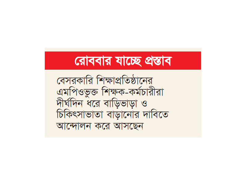 বেসরকারি শিক্ষাপ্রতিষ্ঠানের এমপিওভুক্ত শিক্ষক-কর্মচারীরা দীর্ঘদিন ধরে বাড়িভাড়া ও চিকিৎসাভাতা বাড়ানোর দাবিতে আন্দোলন করে আসছেন। এর পরিপ্রেক্ষিতে অন্তর্বর্তী সরকার তাদের বাড়িভাড়া ১ হাজার টাকা বাড়িয়ে ২ হাজার টাকা করার প্রস্তাব করেছিল। শিক্ষকরা এ প্রস্তাবের বিরোধিতা করে মূল বেতনের ওপর শতাংশ হারে বাড়িভাড়া ভাতার দাবি জানান। ঢাকায় মহাসমাবেশ করে শিক্ষক-কর্মচারীরা দাবি বাস্তবায়নে আগামী ১০ অক্টোবর পর্যন্ত সরকারকে আলটিমেটাম দিয়েছেন। এ সময়ের মধ্যে দাবি বাস্তবায়নে দৃশ্যমান পদক্ষেপ না নিলে ১২ অক্টোবর থেকে লাগাতার আন্দোলনের ঘোষণা দিয়েছেন।