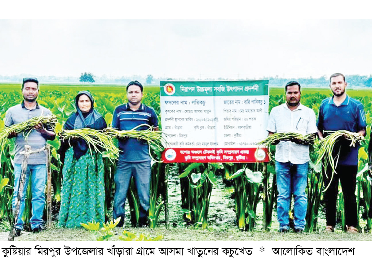 বারি পানি কচু-১ জাতের লতি কচুর চাষ করে উদ্যোক্তা গৃহবধূ আসমা খাতুন তার নিজের ভাগ্যবদল করেছেন। বর্ষায় পানিতে ডুবে যাওয়া নিচু জমিতে কৃষকের সাধারণত চাষাবাদের আগ্রহ থাকে সীমিত। তবে কুষ্টিয়ার মিরপুর উপজেলার বহলবাড়ীয়া ইউনিয়নের খাঁড়ারা গ্রামের সেই জমিগুলোতে এখন সার্থকভাবে চাষ হচ্ছে লতিকচু। স্যাঁতসেঁতে জমিতে কচুর সফল আবাদ উদ্যোক্তা আসমা খাতুনকে অর্থনৈতিক উন্নয়নে নতুন সম্ভাবনা তৈরি করেছে।