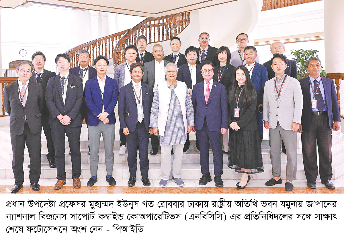 বাংলাদেশ থেকে এক লাখ দক্ষ কর্মী নিয়োগের অগ্রগতি জানাতে জাপানের ‘ন্যাশনাল বিজনেস সাপোর্ট কম্বাইন্ড কোঅপারেটিভস’ (এনবিসিসি) এর প্রতিনিধিদল প্রধান উপদেষ্টা প্রফেসর মুহাম্মদ ইউনূসের সঙ্গে সাক্ষাৎ করেছেন। গত রোববার রাষ্ট্রীয় অতিথি ভবন যমুনায় ২৩ সদস্যের একটি প্রতিনিধিদল প্রধান উপদেষ্টার সঙ্গে সাক্ষাৎ করেন। এ সময় প্রবাসী কল্যাণ ও কর্মসংস্থান উপদেষ্টা ড. আসিফ নজরুল ও প্রধান উপদেষ্টার কার্যালয়ের এসডিজি বিষয়ক মুখ্য সমন্বয়ক লামিয়া মোরশেদ উপস্থিত ছিলেন। ‘ন্যাশনাল বিজনেস সাপোর্ট কম্বাইন্ড কোঅপারেটিভস’ হলো ৬৫টিরও বেশি কোম্পানির একটি জাপানি ব্যবসায়িক ফেডারেশন যারা সম্প্রতি দক্ষ বাংলাদেশি কর্মী নিয়োগের সুবিধার্থে এ দেশের সঙ্গে একটি সমঝোতা স্মারক (এমওআই) স্বাক্ষর করেছে।