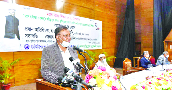 (আইডিইবি) মিলনায়তনে বিজয়ের মাস উপলক্ষে বঙ্গবন্ধু ডিপ্লোমা ইঞ্জিনিয়ার্স অ্যাসোসিয়েশন আয়োজিত ‘মুক্তিযুদ্ধবিরোধী অপশক্তির ষড়যন্ত্র প্রতিরোধে করণীয়’ শীর্ষক আলোচনা সভায় প্রধান অতিথির বক্তৃতায় মন্ত্রী এ কথা বলেন। ইঞ্জিনিয়ার্স ইনস্টিটিউশনের সভাপতি একেএম হামিদের সভাপতিত্বে প্রকৌশলী কবীর হোসেন ও প্রকৌশলী শামসুর রহমান সভায় বক্তব্য দেন। তথ্যমন্ত্রী বলেন, ২০১৮ সালের এ দিনে অনুষ্ঠিত নির্বাচনে ধস নামানো বিজয়ের মাধ্যমে আমরা জনগণের রায় নিয়ে সরকার গঠন করেছি। সেদিন ষড়যন্ত্র ছিল নির্বাচনকে বানচাল করা। এজন্য বিএনপি নির্বাচনে অংশগ্রহণ করবে কি করবে না, এ নিয়ে তারা খোলাসা করে শুরু থেকেই কিছু বলেনি। পরে তারা নির্বাচনে অংশগ্রহণ করেছে। তাদের উদ্দেশ্য ছিল অংশগ্রহণ করে নির্বাচনকে প্রশ্নবিদ্ধ করা এবং একইসঙ্গে হাঙ্গামা লাগিয়ে নির্বাচনকে ভ-ুল করা। এটিই ছিল তাদের মূল উদ্দেশ্য। সেটি করতে তারা ব্যর্থ হয়েছে। গণতন্ত্রের বিজয়কেতন উঠেছে ৩০ ডিসেম্বর। সেজন্য আজ গণতন্ত্র বিজয় দিবস। আর বিএনপি যেহেতু সেদিন নির্বাচনকে ভ-ুল করতে চেয়েছিল; কিন্তু করতে ব্যর্থ হয়েছে, সেজন্য তারা দিবসটিকে ভিন্নভাবে পালন করছে উল্লেখ করে ড. হাছান বলেন, প্রকৃতপক্ষে তারা সেদিন গণতন্ত্রকে ব্যর্থ করে দিতে চেয়েছিল। সেজন্যই তারা আজ ভিন্ন নাম দিয়ে দিবসটি পালন করছে। আওয়ামী লীগের যুগ্ম সাধারণ সম্পাদক বলেন, আমরা দেখতে পাচ্ছি, সারা দেশে তারা আজ বিক্ষোভ সমাবেশের ডাক দিয়েছে। ঢাকাসহ দেশের বিভিন্ন জায়গায় পুলিশের সঙ্গে তারা হাঙ্গামা বাঁধিয়েছে। অর্থাৎ তারা আবার দেশে একটি গ-গোল পাকাতে চায়।