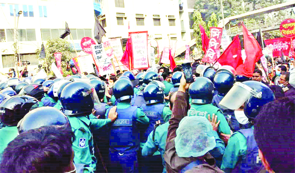 কার্যালয় অভিমুখে মিছিলের কর্মসূচি ছিল জোটের। পল্টন মোড়ে সমাবেশ করে মিছিল প্রধানমন্ত্রীর কার্যালয়ের দিকে এগোলে শাহবাগ মোড়ে পুলিশ তা আটকে দেয়। পুলিশের সঙ্গে ধাক্কাধাক্কি করে ব্যারিকেড ভেঙে পরে জোটের কর্মীরা শাহবাগ মোড়ে অবস্থান নেন। এ সময় সৃষ্টি হয় তীব্র যানজটের। প্রায় আধঘণ্টা ধরে মোড়ে অবস্থান নিয়ে সমাবেশ করেন বামপন্থিরা। এর আগে পল্টন মোড়ে সমাবেশে বাংলাদেশের সমাজতান্ত্রিক দল বাসদের কেন্দ্রীয় নেতা রাজেকুজ্জামান রতন বলেন, ২০১৮ সালের ৩০ ডিসেম্বর একটি লজ্জার দিন। যতদিন এ লজ্জা থাকবে, ততদিন বামরা পথে থাকবে। ১৯৭৩, ১৯৮৮ এর নির্বাচনের সঙ্গে ২০১৪ এবং ২০১৮ এর নির্বাচনও একসঙ্গে উচ্চারণ হবে। আমরা কালো দিবস বলছি। সরকারের মুখে কালি লেপতে চাই আমরা। প্রধানমন্ত্রী বলেছেন, তিনি জনগণের কাছে ক্ষমতা ফিরিয়ে দিয়েছেন। আমরা বলতে চাই, জনগণের প্রতারিত হওয়া তিনি ফিরিয়ে দিয়েছেন। বিপ্লবী ওয়ার্কার্স পার্টির সাধারণ সম্পাদক সাইফুল হক বলেন, ৩০ ডিসেম্বর মানুষের ভোটের অধিকার কেড়ে নেওয়া হয়েছে। এর মাধ্যমে মানুষের কথা বলার অধিকারও কেড়ে নিয়েছে এ অগণতান্ত্রিক সরকার। কথা বললেই তারা ডিজিটাল আইনে মামলা করছে। রাষ্ট্রকে দমন-পীড়নের যন্ত্র বানানো হয়েছে। সমাবেশ শেষে বাম জোটের মিছিল প্রেসক্লাবের সামনে দিয়ে মৎস্যভবন এলাকায় পৌঁছালে পুলিশ বাধা দেয়। তবে জোটের কর্মীরা পুলিশকে সরিয়ে মিছিল নিয়ে সামনে এগোন। পরে শাহবাগ মোড়ে পুলিশ ব্যারিকেড দেয়। সেখানে পুলিশের সঙ্গে বাম কর্মীদের হাতাহাতি হয়। পুলিশের বাধার মুখে তারা শাহবাগ মোড়ে অবস্থান নেন। সেখানে সমাবেশ করে পরবর্তী কর্মসূচি ঘোষণা করা হয়। সমাবেশে নেতারা বলেন, ২০১৮ সালের ৩০ ডিসেম্বর তৎকালীন ক্ষমতাসীন দল পুলিশ ও প্রশাসনকে ব্যবহার করে দিনের ভোট রাতে করার মধ্য দিয়ে অবৈধভাবে পুনঃক্ষমতাসীন হয়েছে। এ সরকার গায়ের জোরে ক্ষমতাসীন রয়েছে। এ সরকারের ক্ষমতায় থাকার নৈতিক কোনো অধিকার নেই। পদত্যাগ না করলে গণ-অভ্যুত্থানের মাধ্যমে সরকারকে পদত্যাগে বাধ্য করা হবে। তারা নির্বাচন কমিশনকে পদত্যাগের আহ্বান জানিয়ে বলেন, ব্যর্থ নির্বাচন কমিশন যদি স্বেচ্ছায় পদত্যাগ না করে; তবে রাষ্ট্রপতির কর্তব্য হবে তার সাংবিধানিক ক্ষমতা প্রয়োগ করে নির্বাচন কমিশনকে বরখাস্ত করা। সমাবেশে আরও বক্তব্য দেন গণসংহতি আন্দোলনের কেন্দ্রীয় নেতা জোনায়েদ সাকী, বাসদের (মার্কসবাদী) জহিরুল হক, ওয়ার্কার্স পার্টির (মার্কসবাদী) সিরাজুম মুনীর প্রমুখ।