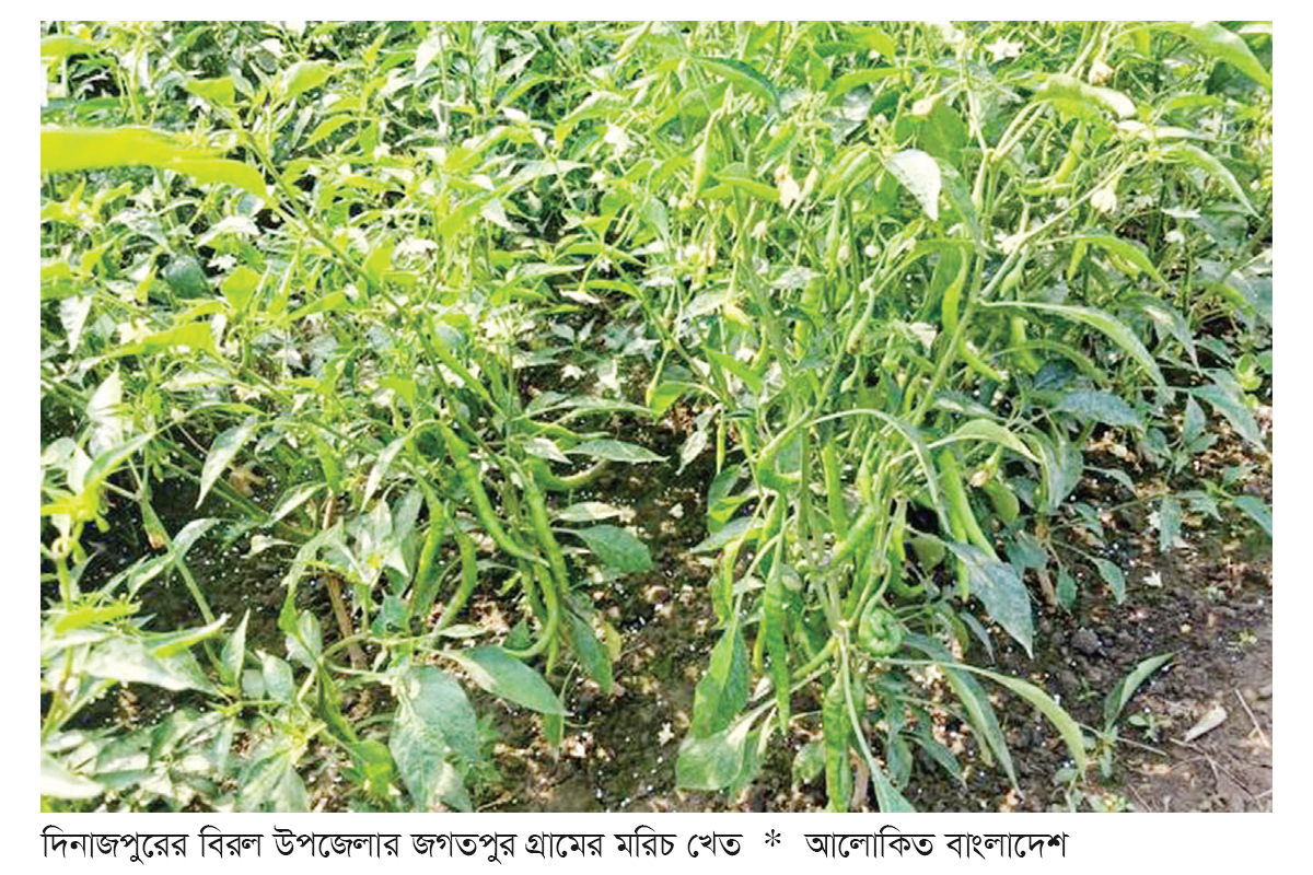 দিনাজপুরে ২ হাজার ৮৬২ হেক্টর জমিতে লক্ষ্যমাত্রা নির্ধারণ করা হয়েছে। ঐতিহ্যবাহী মরিচের চাষাবাদে চাষিদের ভাগ্য ঘুরছে যাচ্ছে। চলতি মৌসুমে ভালো ফলন হয়েছে মরিচের। বিভিন্ন স্থান থেকে পাইকাররা এসে ক্ষেত থেকেই ক্রয় করে নিয়ে যাচ্ছেন মরিচ। চাষিরা দামও পাচ্ছেন ভালো।