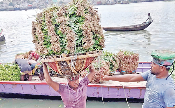 দেশের বিভিন্ন জেলা থেকে নদীপথে রাজধানীর শ্যামবাজারে আসছে বিভিন্ন শাক-সবজি। ছবিটি গতকাল সকালে তোলা * আলোকিত বাংলাদেশ