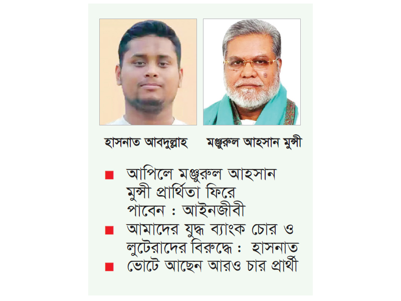 কুমিল্লা-৪ (দেবিদ্বার) আসনে বিএনপির প্রার্থী ইঞ্জিনিয়ার মঞ্জুরুল আহসান মুন্সীর শক্ত প্রতিপক্ষ জুলাই আন্দোলনে আলোচিত ছাত্রনেতা ও জাতীয় নাগরিক পার্টির (এনসিপি) দক্ষিণাঞ্চলীয় মুখ্য সংগঠক হাসনাত আবদুল্লাহ। ভোটের মাঠে লড়াইয়ের আগেই এই দুই প্রার্থী এখন আইনি লড়াইয়ে ব্যস্ত। ঋণখেলাপি হওয়ার কারণে মুন্সীর প্রার্থিতা বাতিল হওয়ায় এবং উচ্চ আদালতে গিয়েও তা ফিরে না পাওয়ায় এখন অনেকটা অনিশ্চিত হয়ে গেছে তার নির্বাচনে অংশ নেওয়ার বিষয়টি। গত বুধবার দুপুরের পর প্রার্থিতা ফিরে পেতে বিএনপির প্রার্থী মঞ্জুরুল আহসান মুন্সীর করা রিট খারিজ করে দেন হাইকোর্ট। বিচারপতি রাজিক আল জলিল ও বিচারপতি মো. আনোয়ারুল ইসলামের হাইকোর্ট বেঞ্চ এই আদেশ দেন। এতে ঋণখেলাপি থাকায় আসন্ন ত্রয়োদশ জাতীয় সংসদ নির্বাচনে অংশ নেওয়ার বিষয়টি ঝুলে যাওয়ায় আপাতত হাসনাতের সামনে মাঠে আর কোনো শক্ত প্রতিদ্বন্দ্বী রইলো না। যদিও মুন্সীর আইনজীবীরা বলছেন, ‘মুন্সীর প্রার্থিতা ফিরে পেতে তারা আইনি লড়াই চালিয়ে যাবেন।’