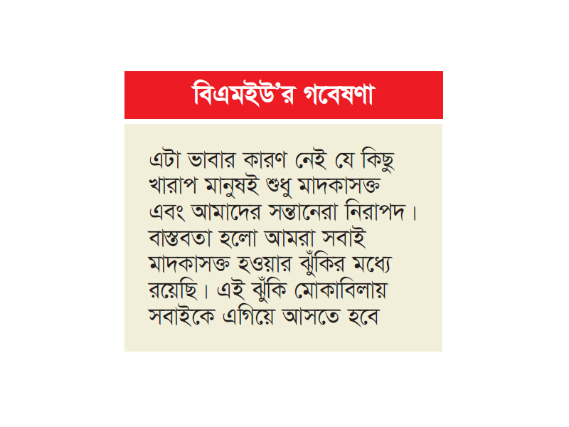 তিনি বলেন, এটা ভাবার কোনো কারণ নেই যে কিছু খারাপ মানুষই শুধু মাদকাসক্ত এবং আমরা বা আমাদের সন্তানেরা নিরাপদ। বাস্তবতা হলো আমরা সবাই মাদকাসক্ত হওয়ার ঝুঁকির মধ্যে রয়েছি। এই ঝুঁকি মোকাবিলায় সবাইকে সচেতন ও ঐক্যবদ্ধভাবে এগিয়ে আসতে হবে।