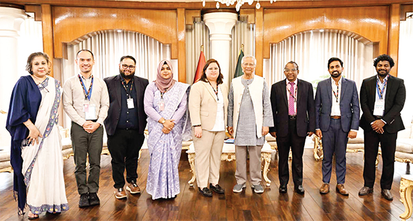 প্রধান উপদেষ্টা প্রফেসর মুহাম্মদ ইউনূসের সঙ্গে গতকাল ঢাকায় রাষ্ট্রীয় অতিথি ভবন যমুনায় এশিয়ান নেটওয়ার্ক ফর ফ্রি ইলেকশনসের সাত সদস্যের নির্বাচন পর্যবেক্ষক দল সাক্ষাৎ শেষে ফটোসেশনে অংশ নেয় * পিআইডি