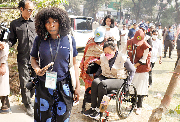 জাতীয় সংসদ নির্বাচন ও গণভোট পর্যবেক্ষণে আসা কমনওয়েলথ প্রতিনিধি দলের সদস্যরা গতকাল বৃহস্পতিবার খিলগাঁও মডেল কলেজ কেন্দ্র পরিদর্শন করেন * আলোকিত বাংলাদেশ