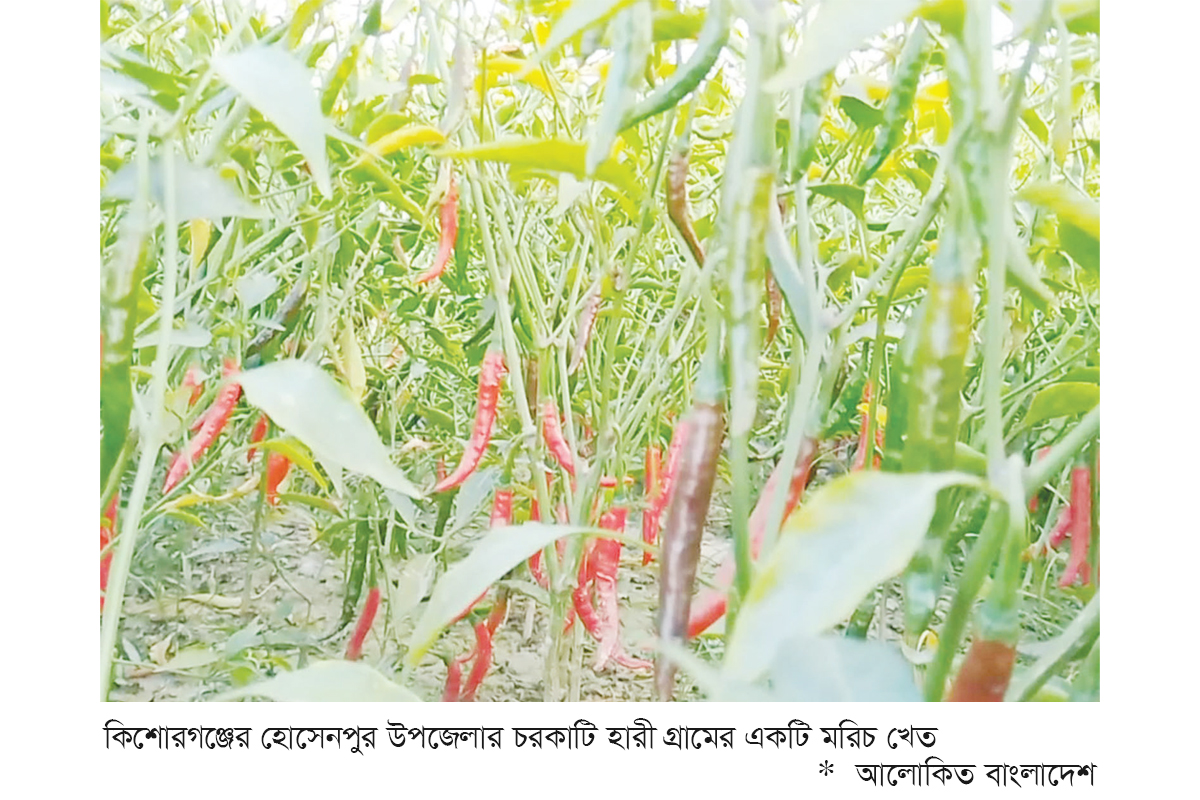 কিশোরগঞ্জের হোসেনপুর উপজেলায় এ বছর মরিচ চাষে এসেছে আশাতীত সাফল্য। মাঠজুড়ে সবুজ গাছের ফাঁকে লাল-সবুজ মরিচের ঝাড় যেন কৃষকের স্বপ্নের রঙ ছড়িয়ে দিয়েছে। ফলন যেমন বাম্পার, তেমনি বাজারদরও গত বছরের তুলনায় প্রায় দ্বিগুণ, ফলে কৃষকের মুখে এখন স্বস্তির হাসি। তবে গত বছরে মরিচ চাষে ক্ষতির অভিজ্ঞতা থেকে এবার চাষিরা ভয়ে ছিল। কিন্তু সকল ভয়কে জয় করতে বিধাতা যেন মরিচ চাষে কৃষকের আশীর্বাদ নিয়ে এসেছেন।
