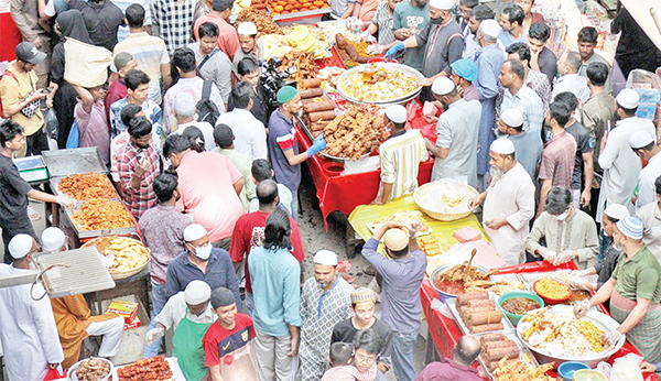 রাজধানীর পুরান ঢাকার চকবাজারে পবিত্র মাহে রমজানের তৃতীয় দিন ঐতিহ্যবাহী বাহারি ইফতার সামগ্রী কিনতে ক্রেতাদের উপচেপড়া ভিড় ছিল। ছবিটি গতকাল বিকালে তোলা * আলোকিত বাংলাদেশ